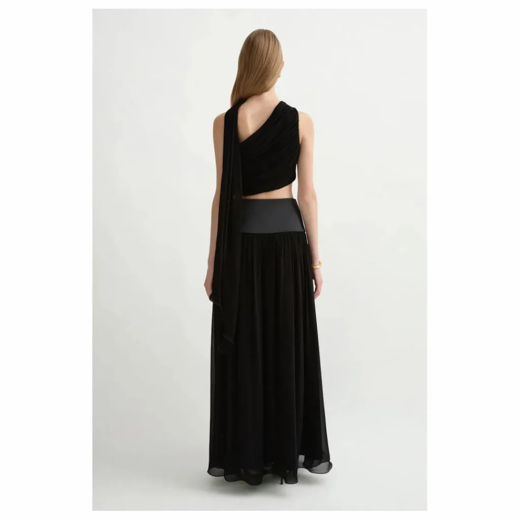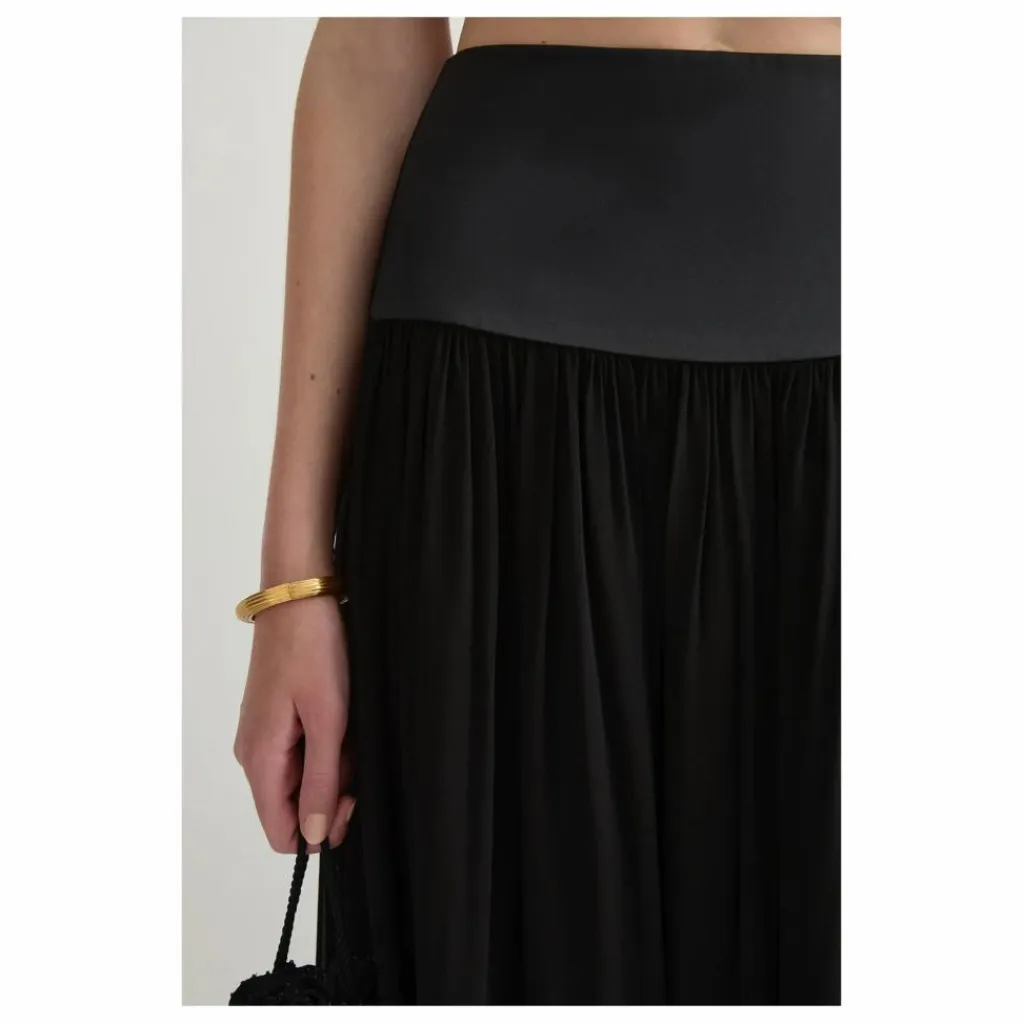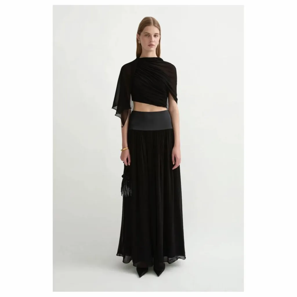 - LA JUPE SOLENE EST CONÇUE POUR S’ASSEOIR À LA TAILLE, AVEC UNE CEINTURE CONTRASTÉE ET UNE JUPE FRONCÉE. LA SUPERPOSITION DE TISSUS EST FINIE PAR UN OURLET TORSADÉ BABYLOCK, AJOUTANT UNE TOUCHE UNIQUE À CETTE PIÈCE FLATTEUSE.