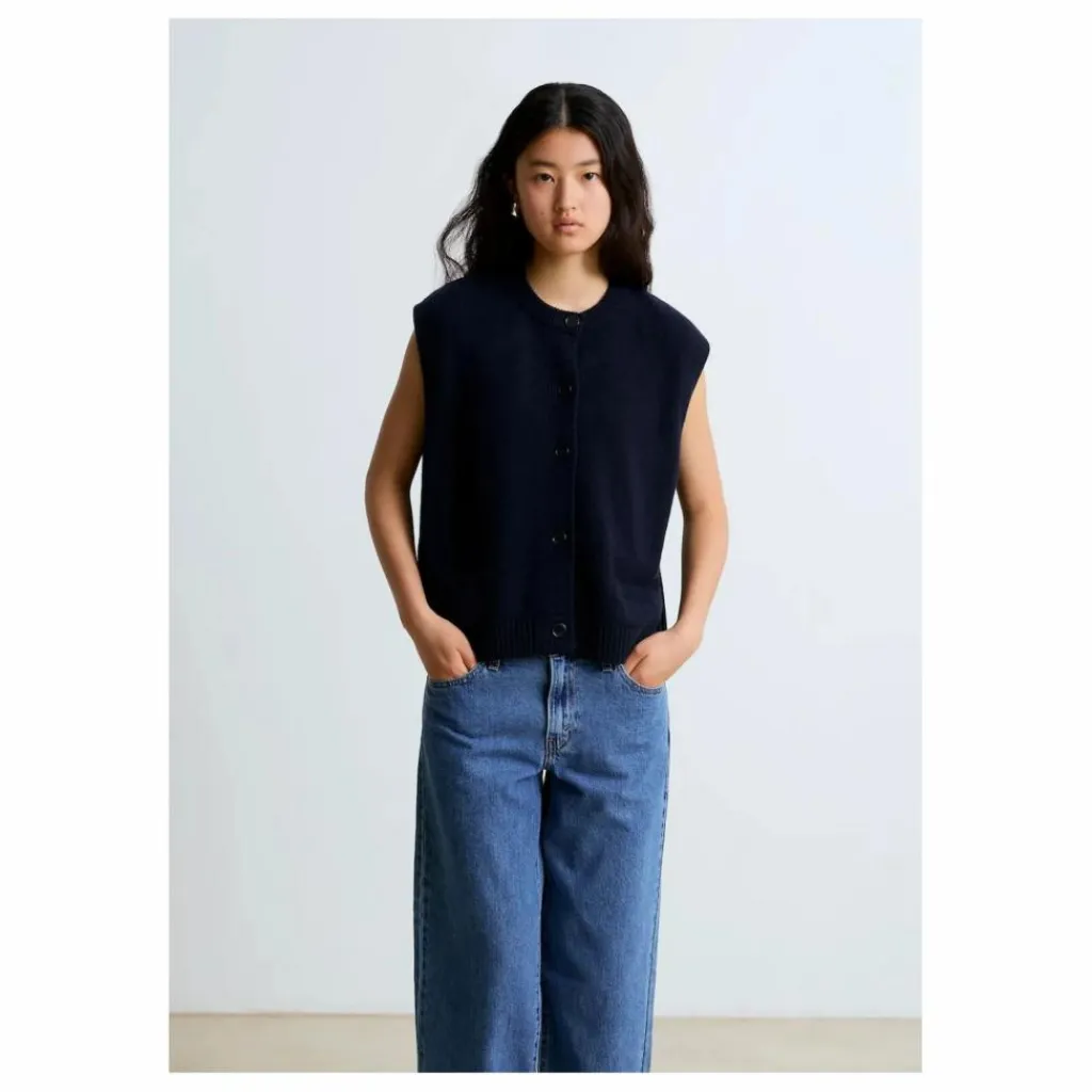 - Le cardigan Margaux est un cardigan sans manches à la coupe droite.