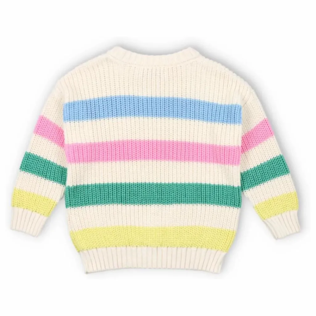 - L’un de nos meilleurs vendeurs, le pull Leto, avec ses rayures colorées et sa maille côtelée. L’encolure, les poignets et l’ourlet sont côtelés. C’est un vêtement polyvalent qui peut être combiné avec le reste de la collection.