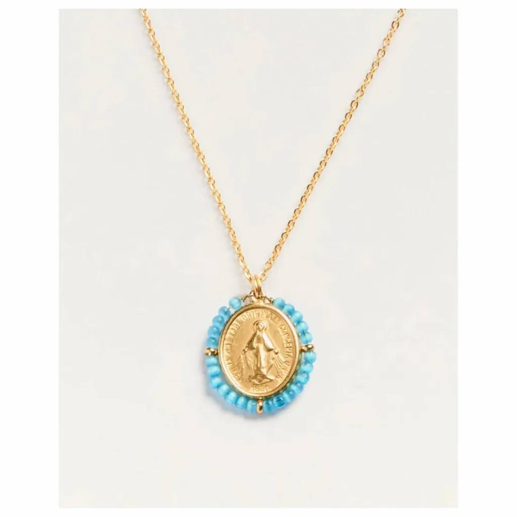 Collier hypoallergénique. Notre médaille porte-bonheur et peut-être aussi la vôtre ? Un collier doré plein de symboles à porter près du coeur.Disponible dans de nombreuses couleurs différentes, notre collier médaille Santa Maria est un bijou hypoallergénique qui se porte en toutes circonstances.