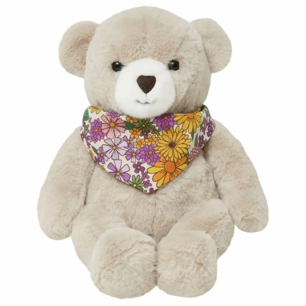 Maurice, ce petit ourson est souple et extrêmement doux. Il porte un petit foulard au tour du cou amovible et promet à votre enfant des heures de câlins !