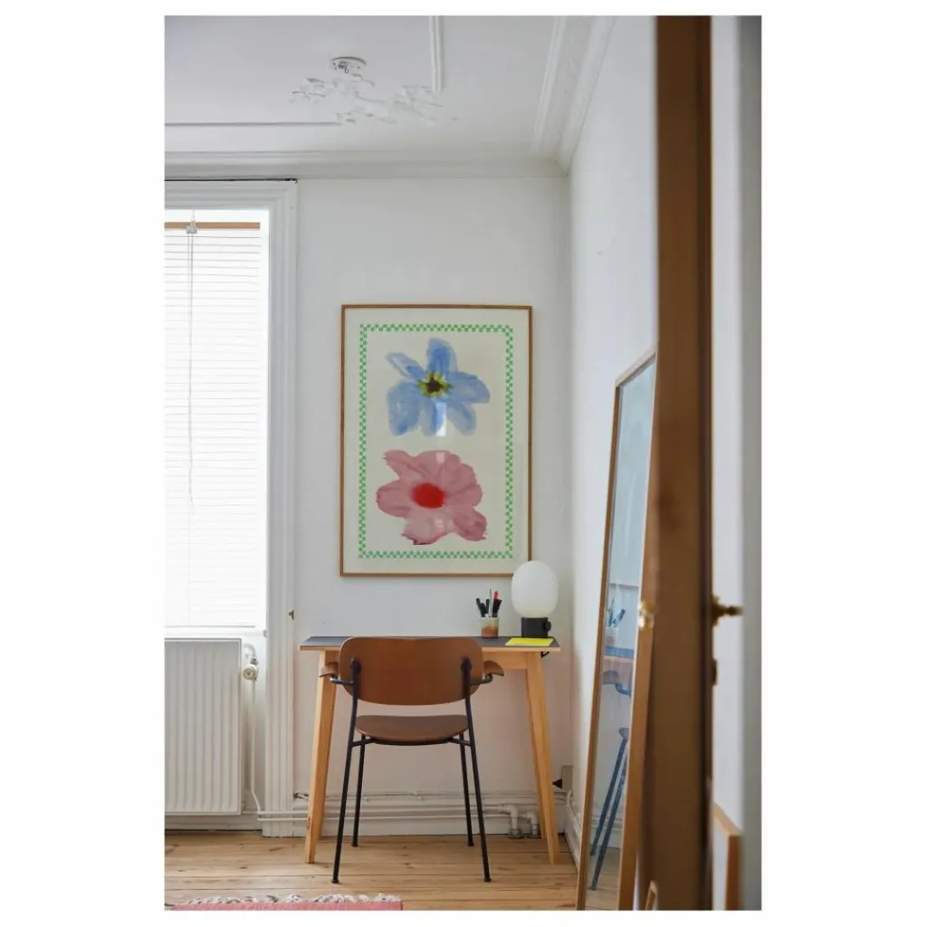 - Flower with Checks présente une collection de trois tirages d’art de l’artiste suédoise Liat Greenberg. Chaque pièce a été peinte sur du bois, ce qui confère aux fleurs à l’aquarelle, signature de Greenberg, un caractère imprévisible car la peinture réagit au grain du bois. Le motif graphique en damier crée un décalage audacieux, ce qui donne une vision contemporaine de la nature morte florale.