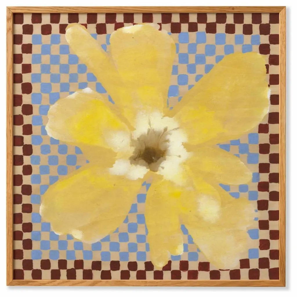 - Flower with Checks présente une collection de trois tirages d’art de l’artiste suédoise Liat Greenberg. Chaque pièce a été peinte sur du bois, ce qui confère aux fleurs à l’aquarelle, signature de Greenberg, un caractère imprévisible car la peinture réagit au grain du bois. Le motif graphique en damier crée un décalage audacieux, ce qui donne une vision contemporaine de la nature morte florale.