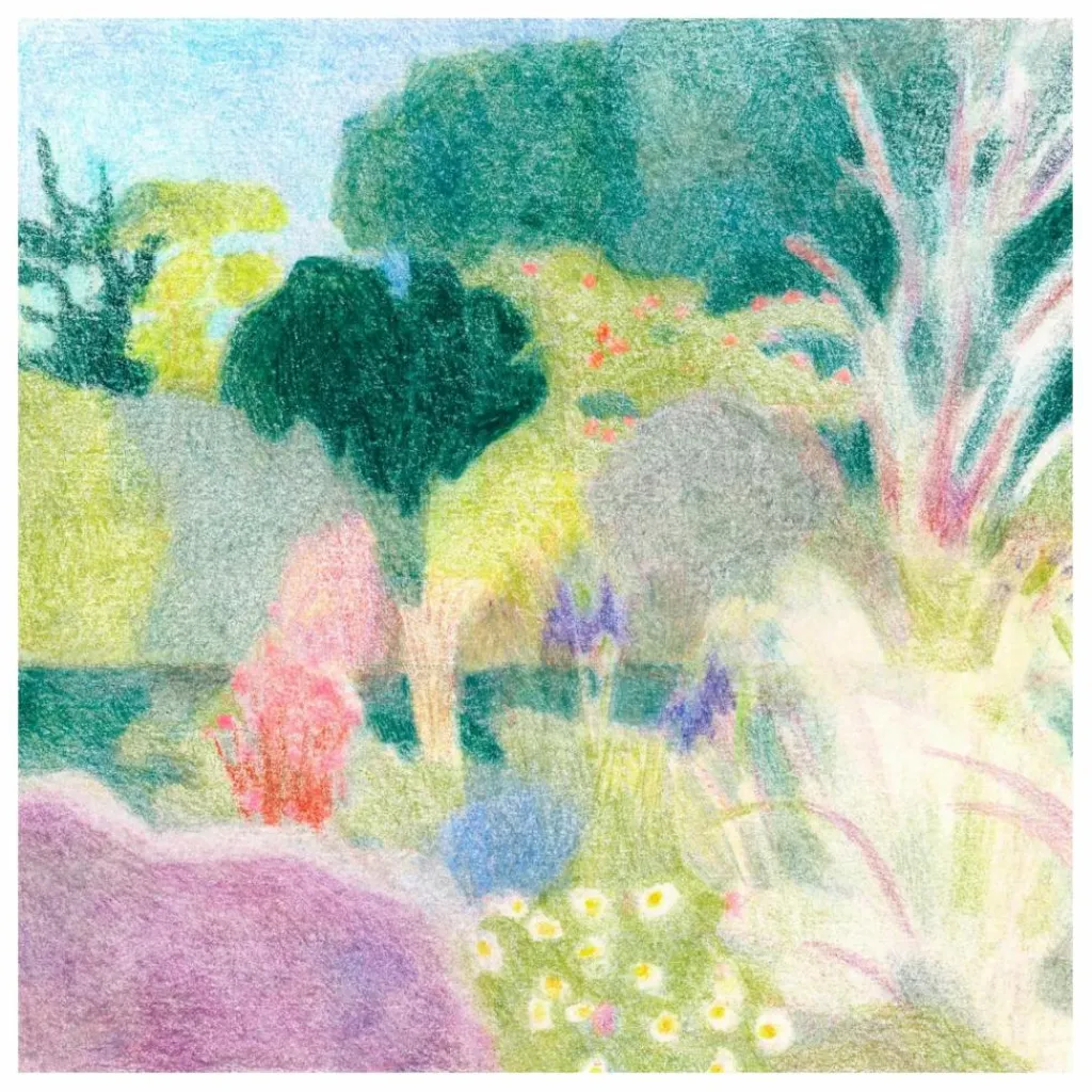 - Un Jardin à Kergoët est une œuvre d’art de l’illustratrice française Line Hachem. La première collection d’œuvres de Line Hachem pour Paper Collective dégage une énergie juvénile à travers ses sujets, ainsi que des couleurs et des textures vibrantes. Capturant des moments dans la nature avec des amis, chaque composition est créée par un délicat travail au crayon, s’assemblant pour créer des compositions à la fois humbles et captivantes.