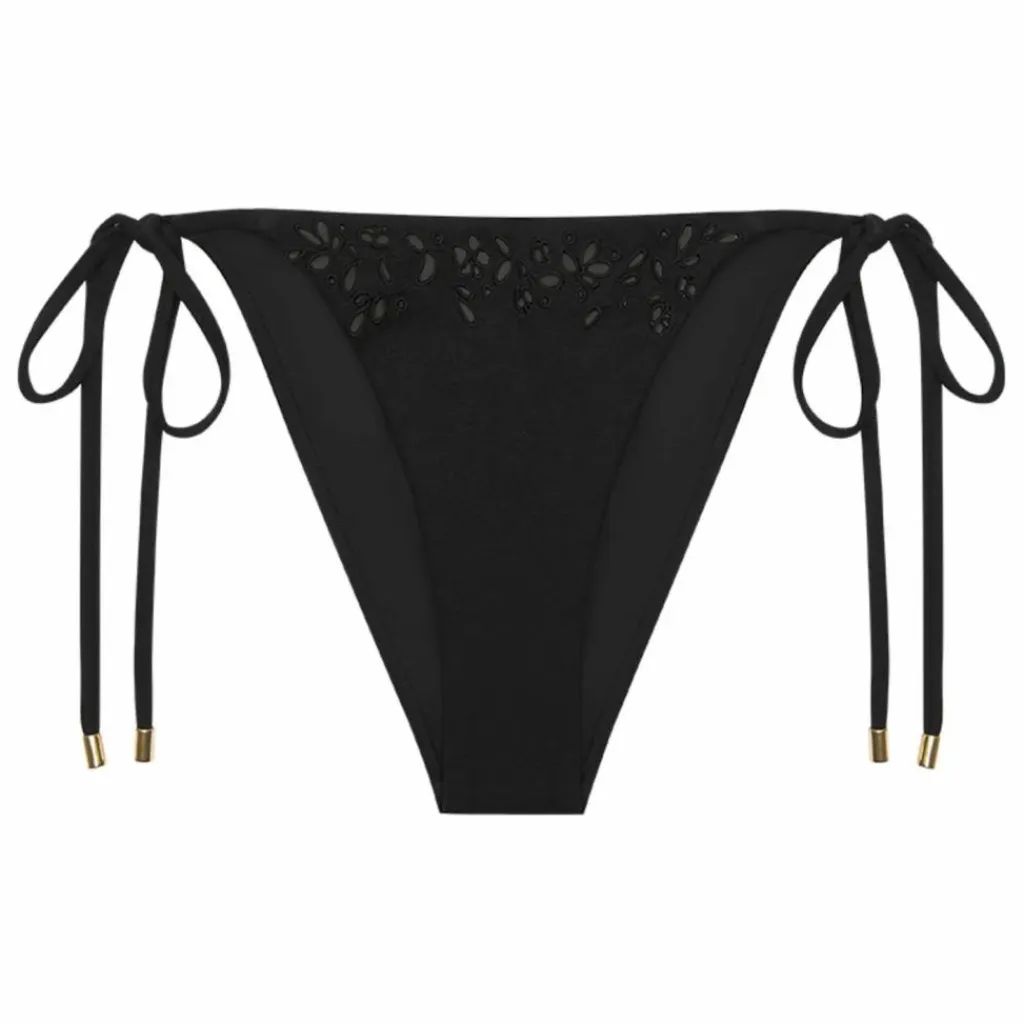 - String Attaches latérales réglables Couverture modérée Détails délicats de la broderie Fabrication en crêpe texturé doux Quincaillerie dorée de première qualité Conforme à la taille. Prenez votre taille habituelle et son tour de hanche est de 101 cm. Taille supérieure pour une couverture plus complète, ou inférieure pour une couverture plus légère. Le modèle de studio de peony, May, porte une taille S et son tour de hanche est de 101 cm.