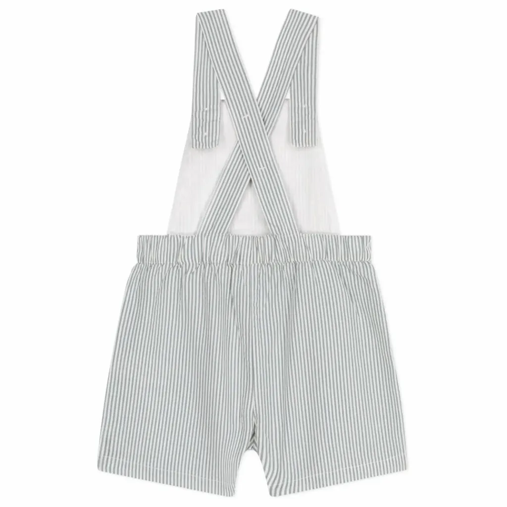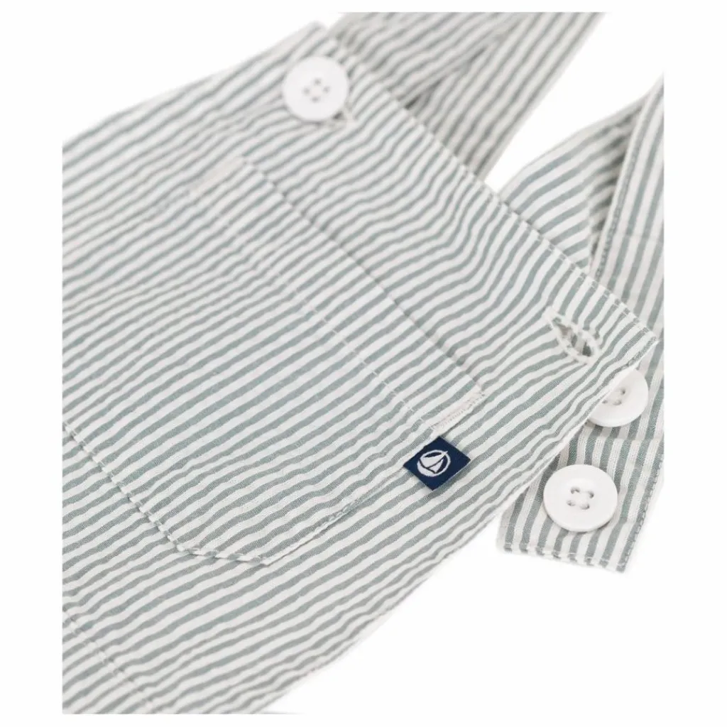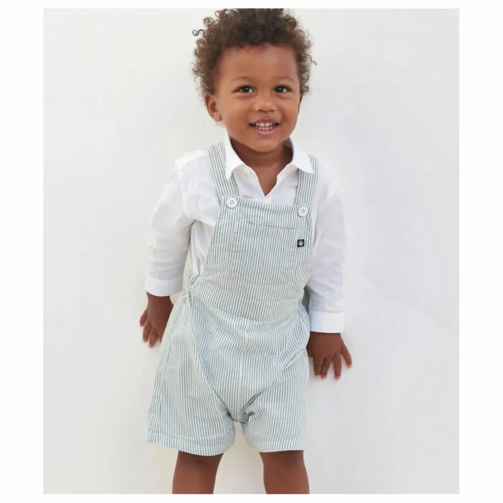 - Salopette garçon en seersucker, un tissu doux et facile à porter, à l’aspect légèrement gaufré.Un must dans la garde-robe de bébé, facile à combiner et idéal pour un look de circonstance ! Les boutons-pression entre les jambes facilitent l’habillage. Longueur au dessus du genou.