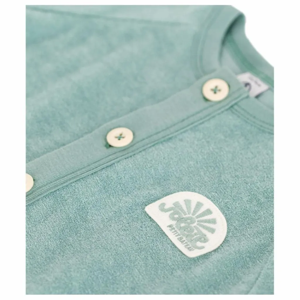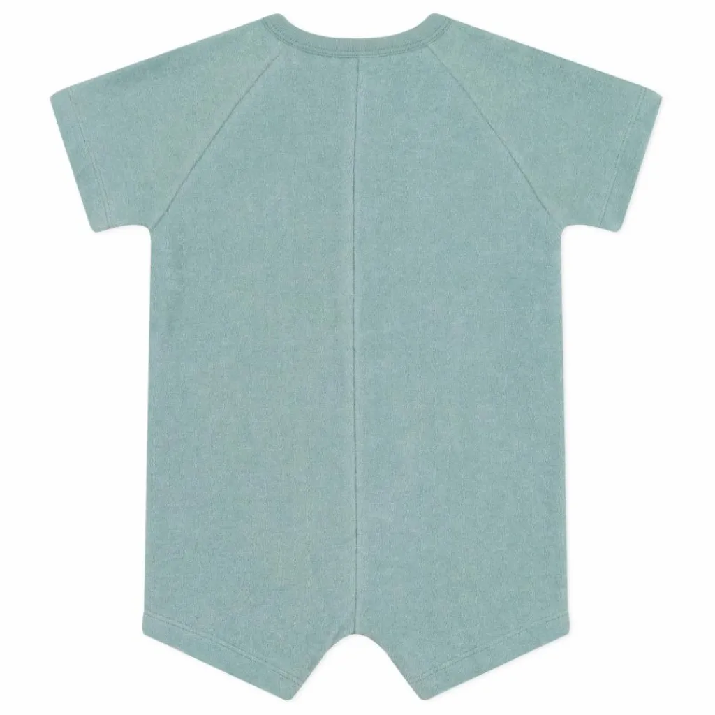 - Combinaison bébé à manches courtes en coton éponge uni avec écusson