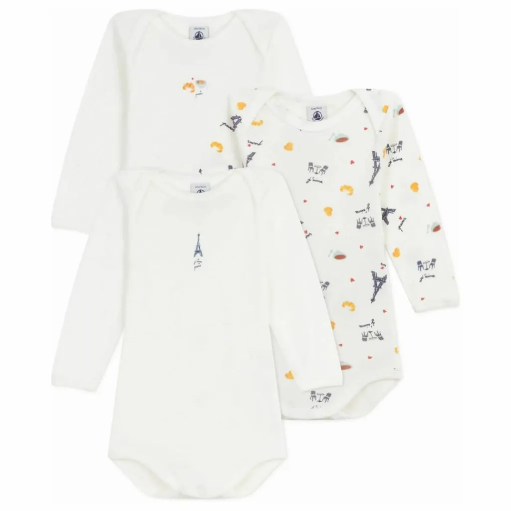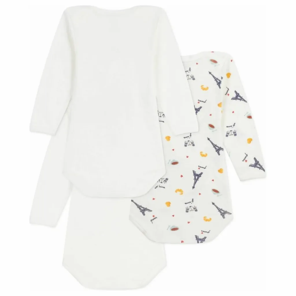 - Pratique grâce à l’encolure américaine et aux boutons-pression à l’entrejambe. Ce lot comprend deux bodies unis et un body imprimé Paris.