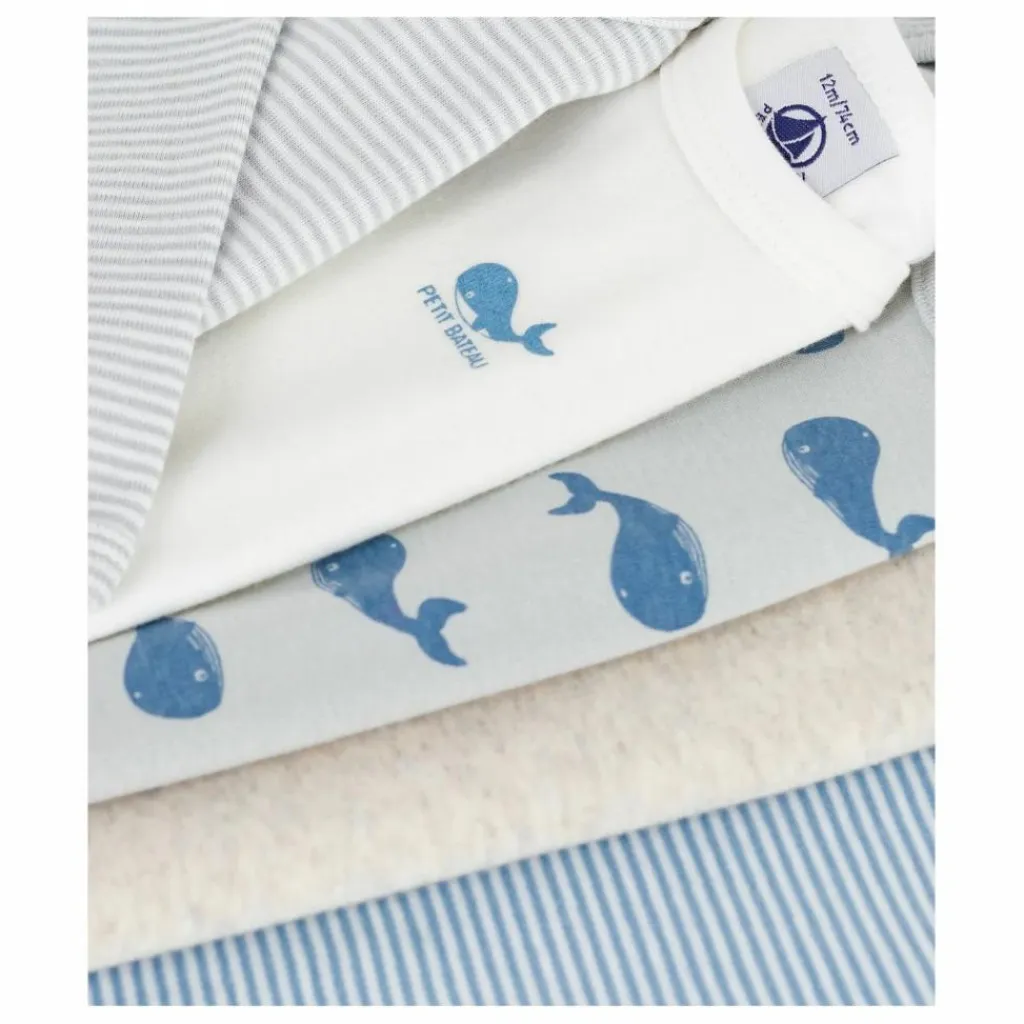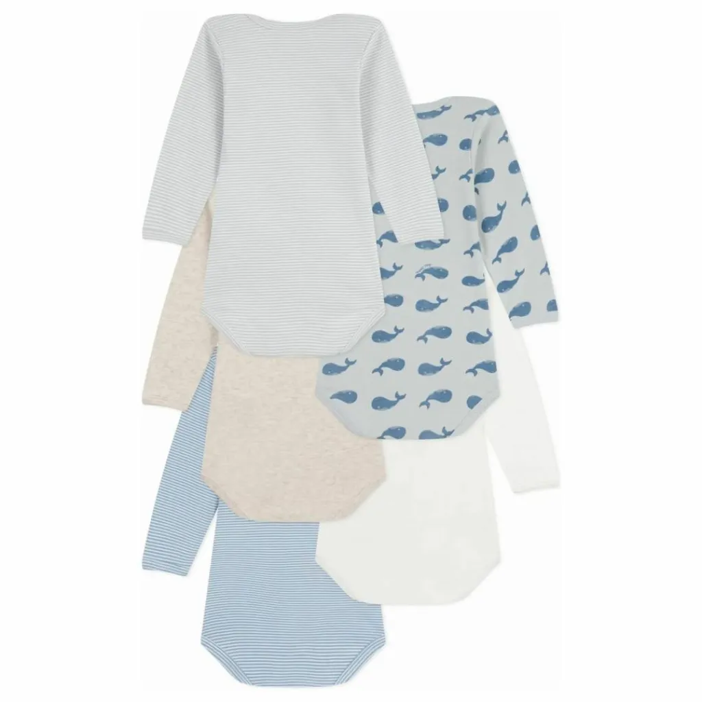 - Pratique grâce à l’encolure américaine et aux boutons-pression à l’entrejambe. Ce lot comprend deux bodies milleraies, deux bodies unis et un body imprimé baleine.