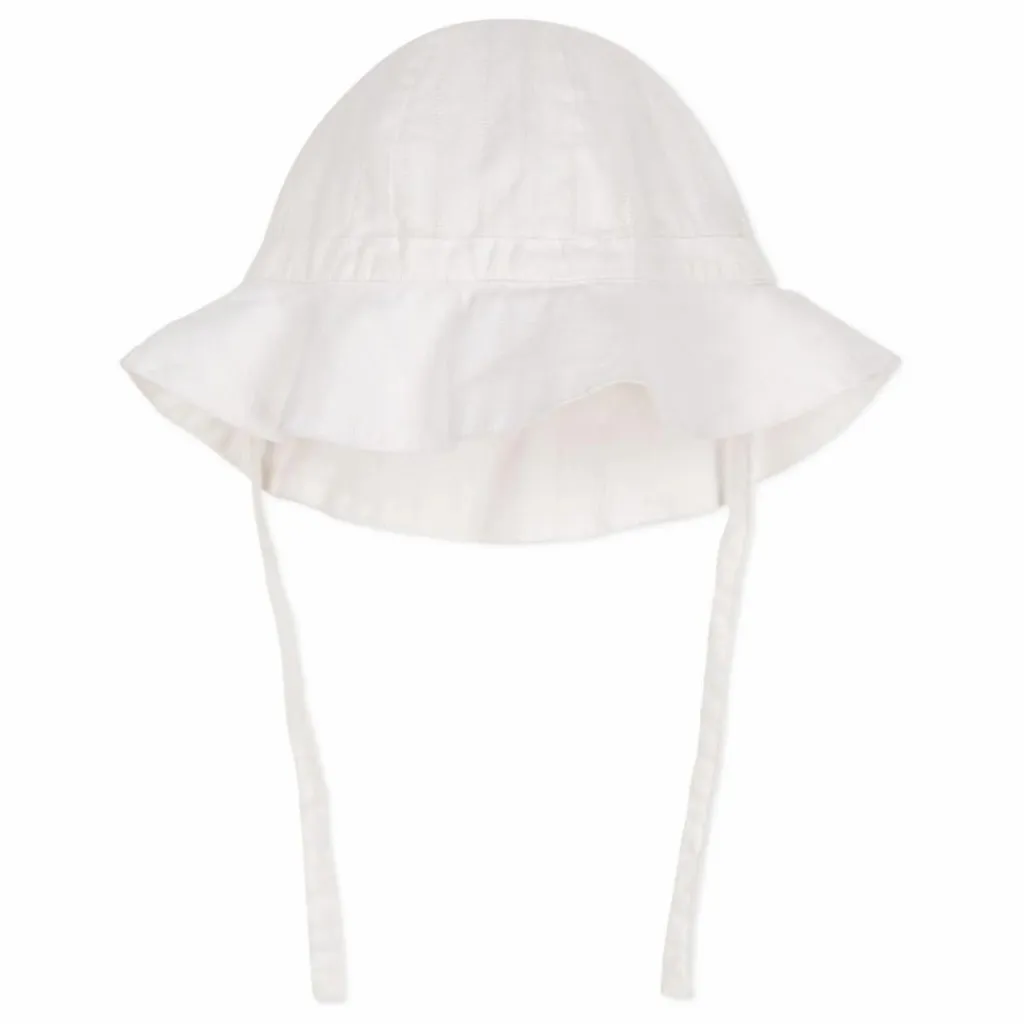 - Chapeau de soleil à capuchon en popeline, un tissu léger et confortable. Les attaches du chapeau de soleil permettent de le maintenir en toute sécurité sur la tête du bébé. Il protège également votre enfant du soleil et ajoute une touche élégante à sa tenue.