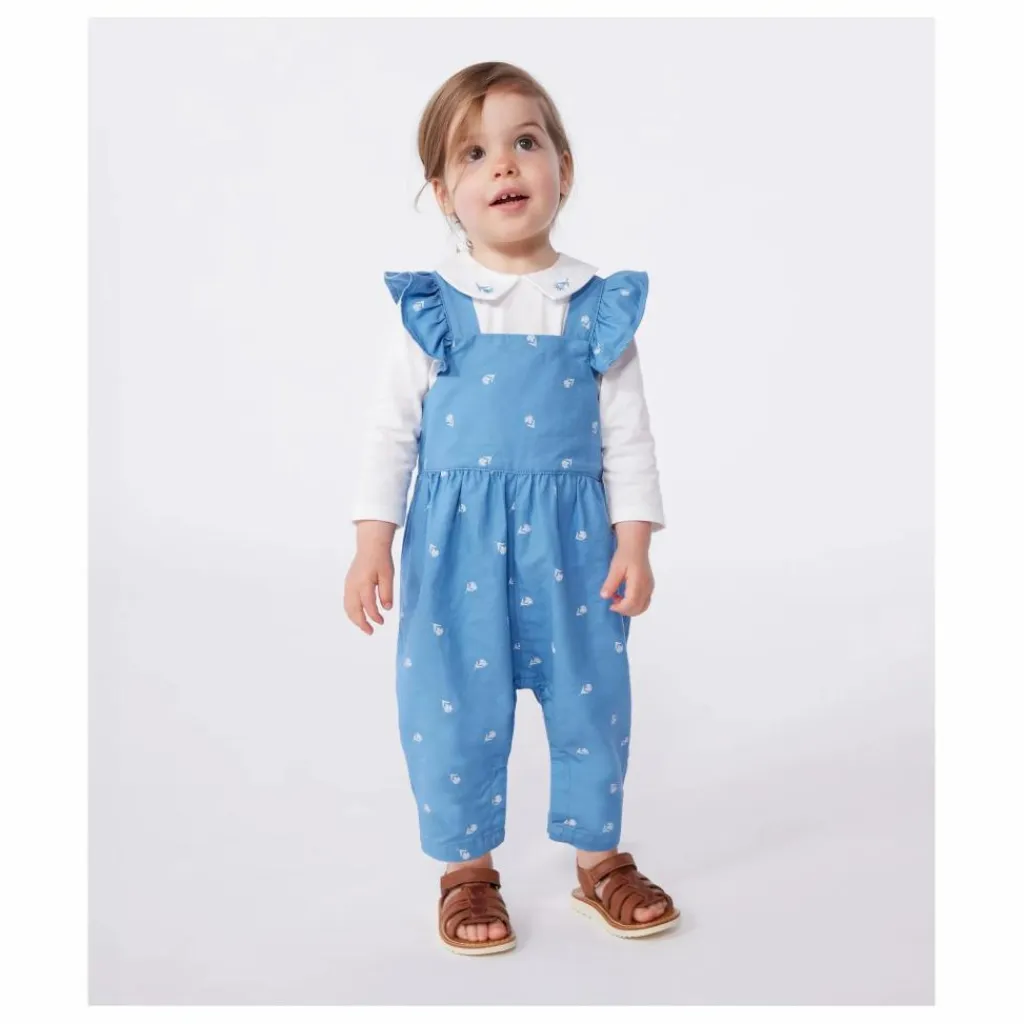 - Salopette fille en sergé, un tissu léger et agréable à porter. Adorable en denim brodé de fleurs délicates ! Bretelles réglables sur le devant avec boutons-pression cachés. Les boutons-pression entre les jambes facilitent grandement l’habillage.