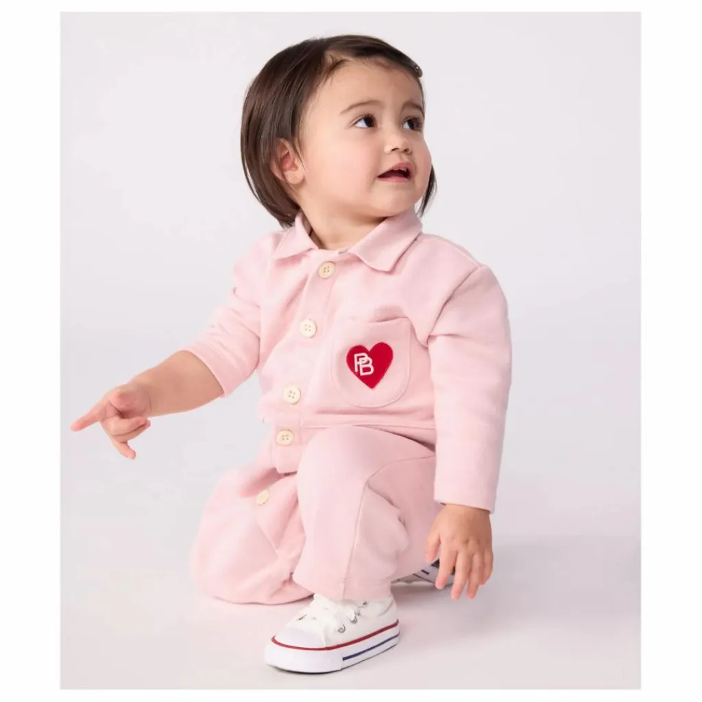 - Combinaison longue style pompiste pour un look résolument moderne.Adorable avec son motif placé à la poitrine.