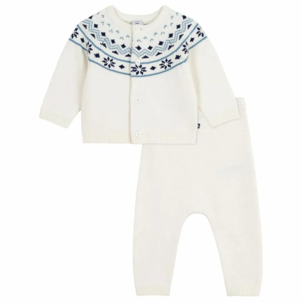 - Jacquard au col du cardigan ainsi qu’aux manches et aux chevilles.