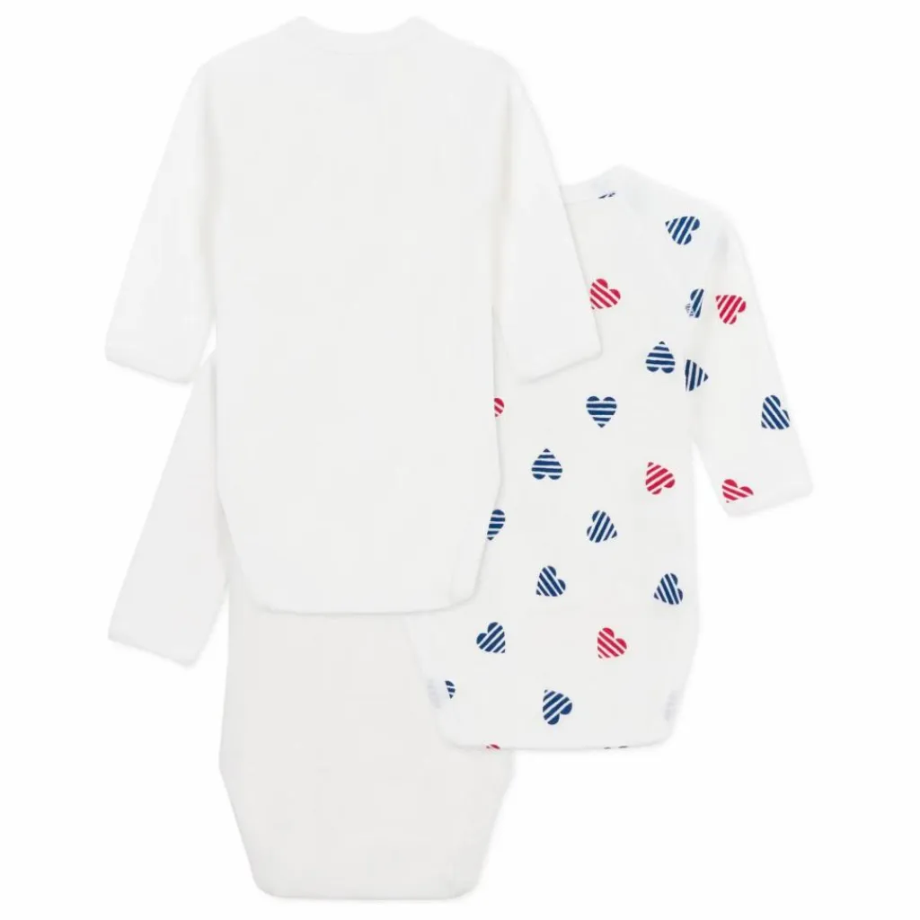 - Body en coton à manches longues à motifs de cœurs rayés pour bébés – Lot de 3
