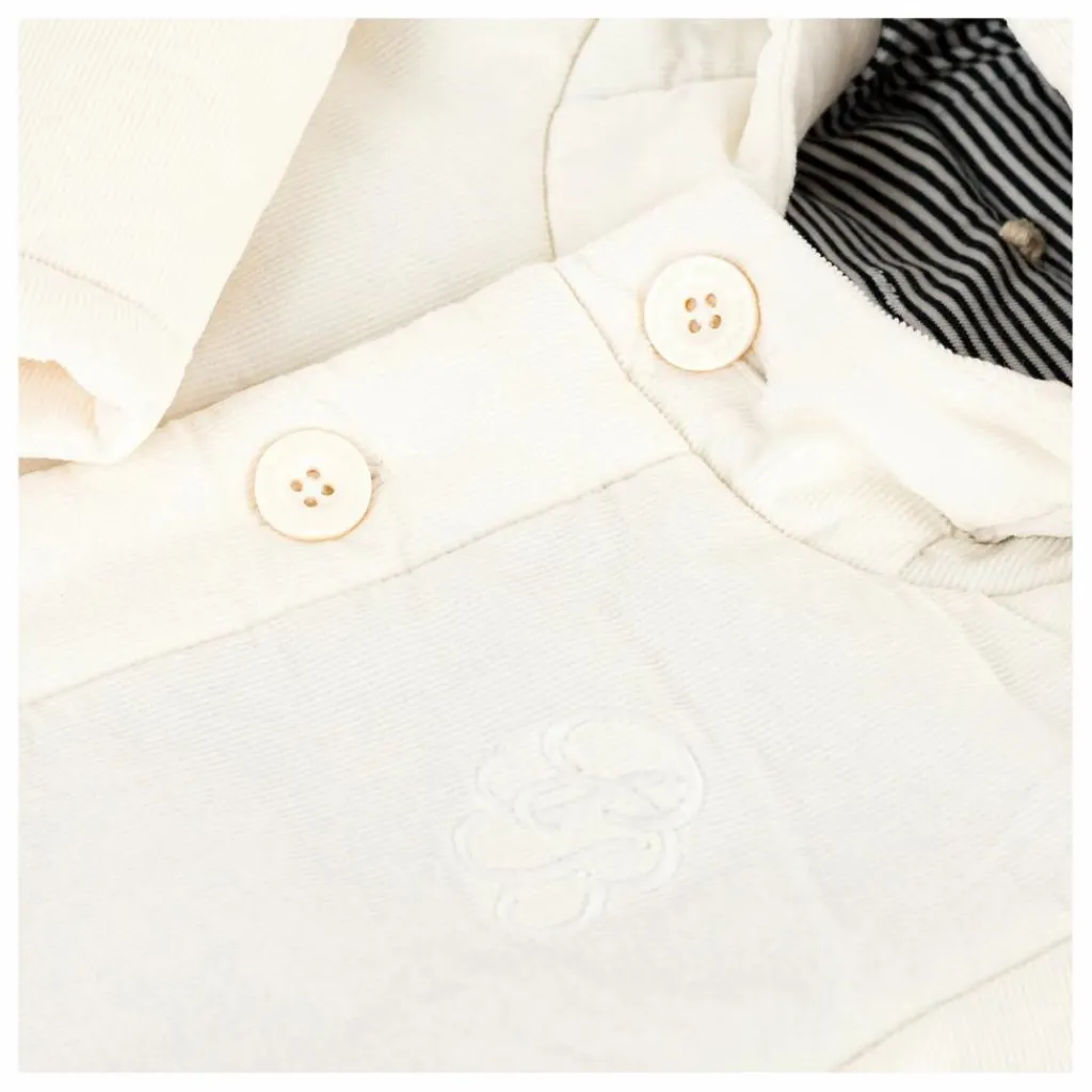 - Légèrement rembourrée, idéale pour les premières fraicheurs de la saison ! Adorable et raffinée avec sa broderie sur le cœur et le détail milleraies dans la capuche.