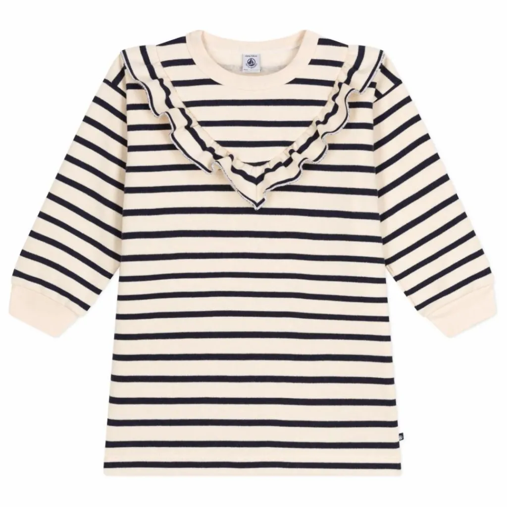- Robe manches longues en molleton gratté à rayures, une matière chaude et douce.