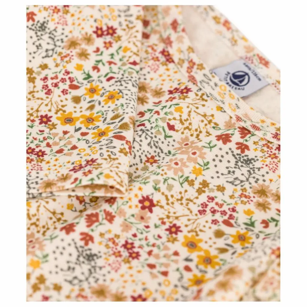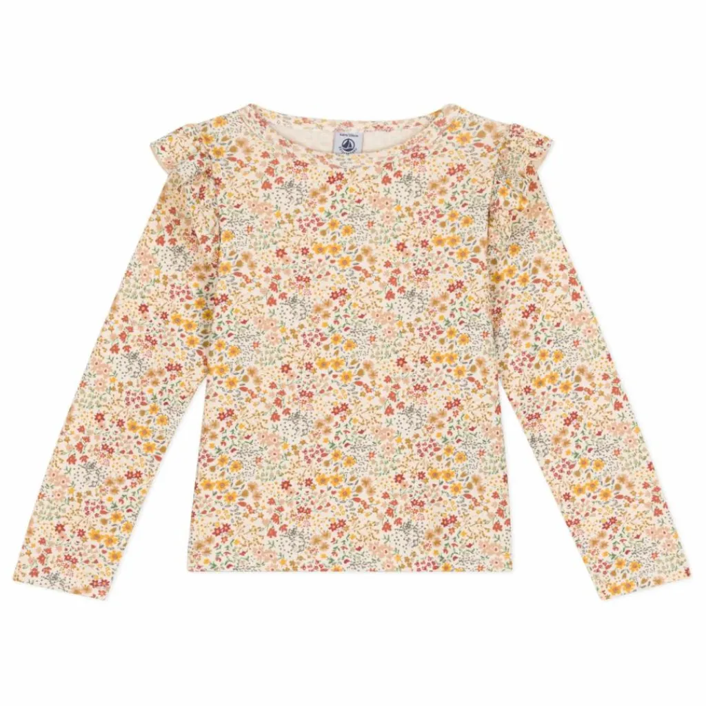 - Tee-shirt manches longues en côte fleurie, une matière extensible et confortable, emblématique de Petit Bateau.