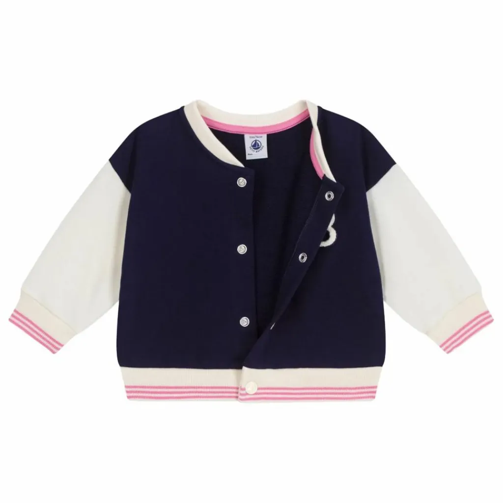 - Encolure arrondie. Ouverture à boutons-pression siglés sur le devant. Craquez pour les détails roses des bords-côtes.