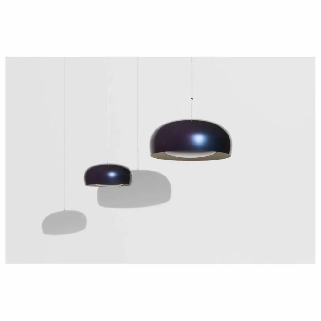 Cette suspension se caractérise par sa forme intemporelle réinterprétée avec des couleurs vibrantes et une finition laquée unique. L’utilisation de ces caractéristiques suggère une esthétique audacieuse et contemporaine qui vient s’harmoniser avec la base intemporelle de la suspension, créant ainsi une pièce qui transcende les époques. La lumière se diffuse subtilement grâce à la pastille intérieure. À la fois indirecte et douce, la lumière se réfléchit dans la coupole pour un éclairage diffus.
