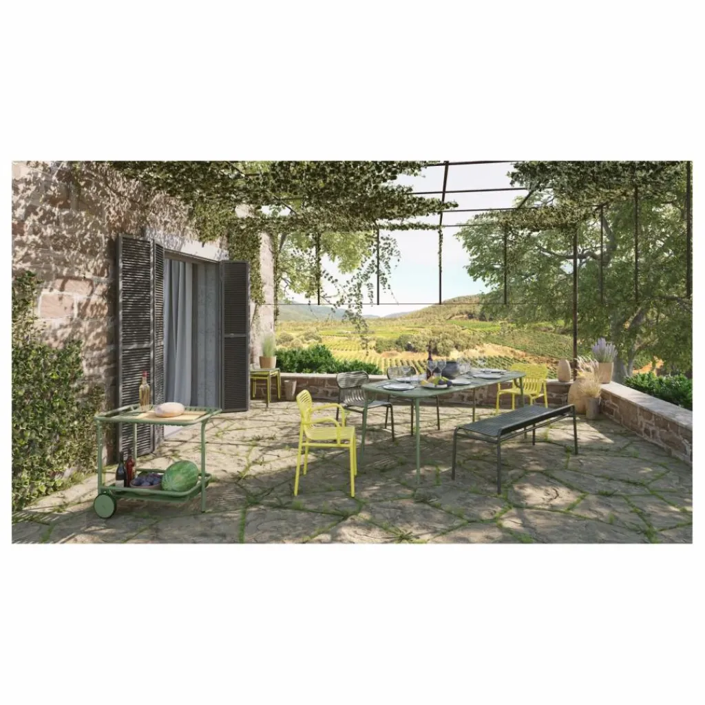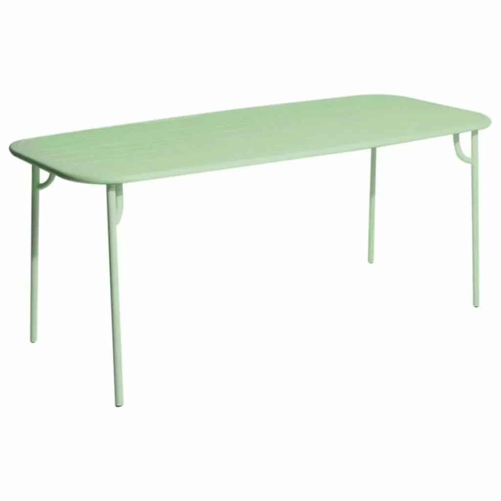 Pouvant accueillir jusqu’à 6 personnes, cette table rectangulaire à lattes de la collection WEEK-END, créée par le Studio BRICHETZIEGLER, marie harmonieusement esthétisme et fonctionnalité. Le plateau arrondi et ses bords définis apportent une touche moderne à sa silhouette, créant un visuel distinctif. Son design unique, renforcé par la solidité de ses lattes, lui confère une élégance intemporelle. Fabriquée en aluminium, chaque table allie robustesse et légèreté. Résistantes à l’eau et aux UV, ces tables sont idéales pour une utilisation en extérieur, y compris en bord de mer, et bénéficient d’une garantie de 5 ans.