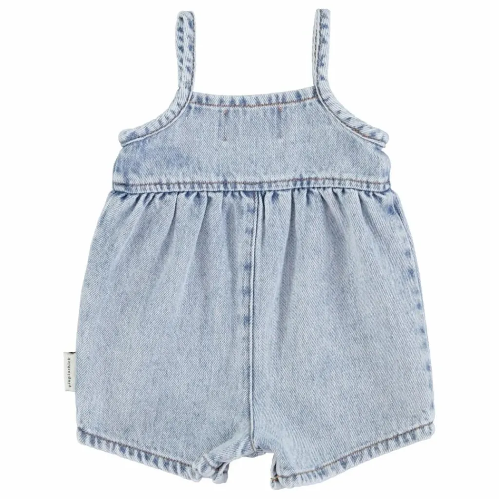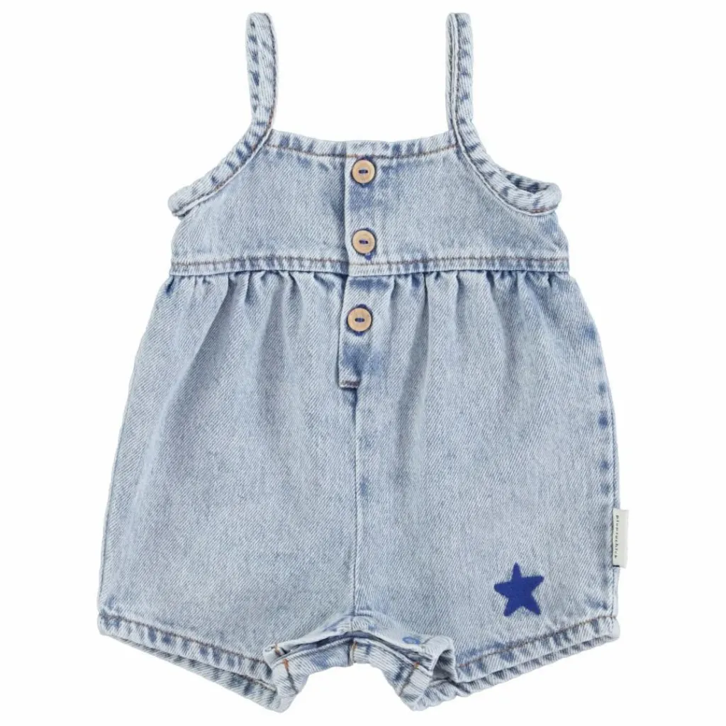 - Salopette courte pour bébé avec boutons-pression à l’entrejambe pour une ouverture facile et boutons en bois sur le devant. Détaillée avec une étoile bleue brodée.