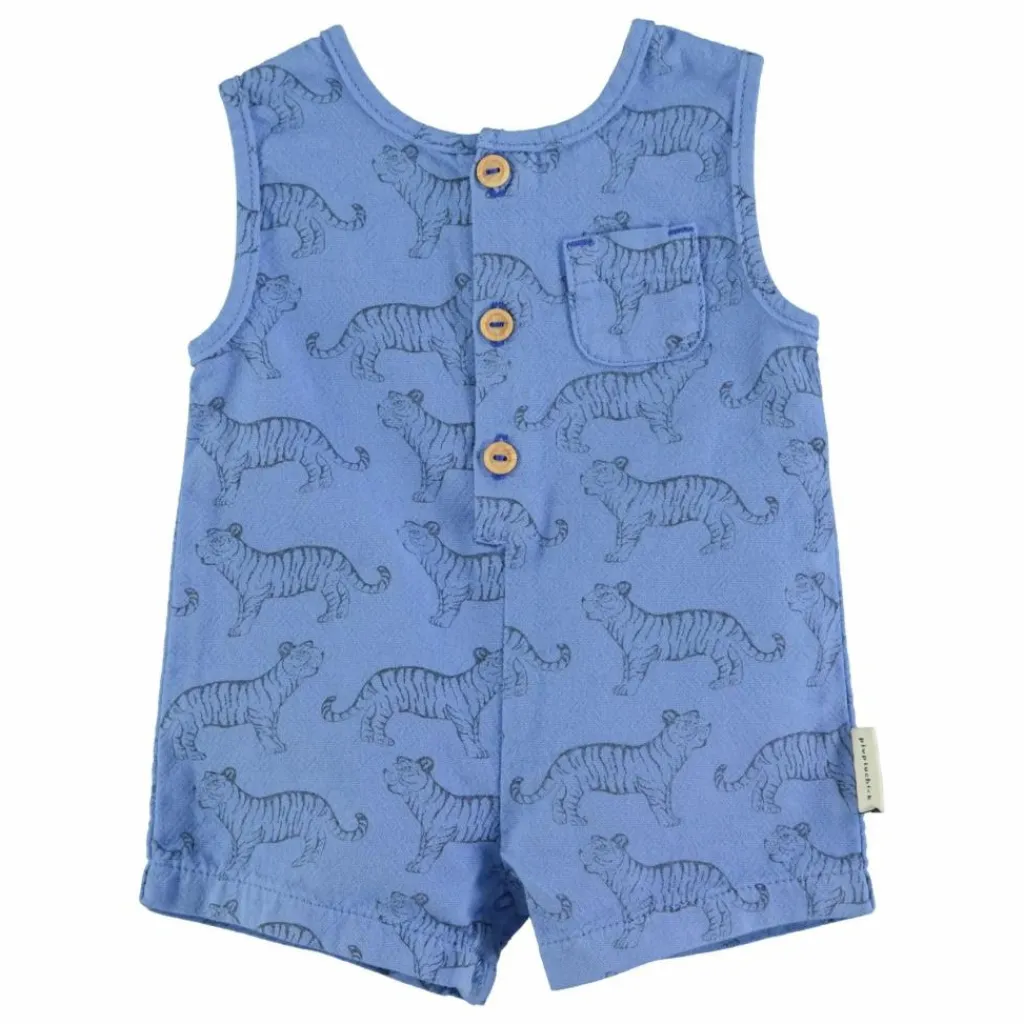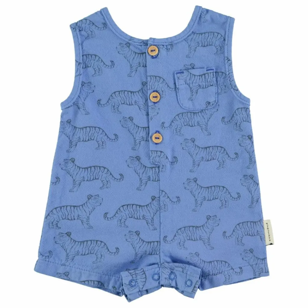 - Combinaison courte sans manches avec boutons pression entre les jambes. Boutons en bois sur le devant et sur la poche de poitrine.
