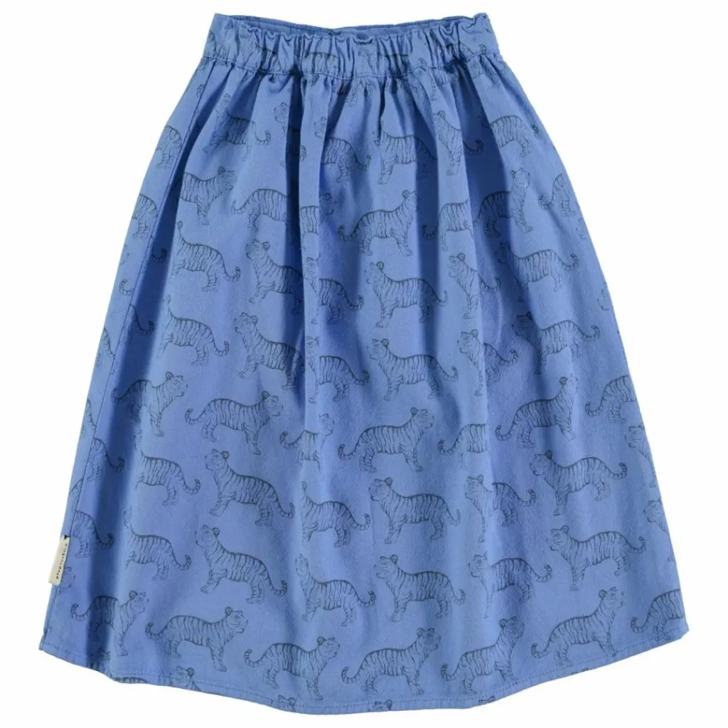 - Jupe longue avec taille élastique réglable et boutons en bois sur le devant. Elle est agrémentée de poches plaquées, dont l’une est brodée du logo bleu.