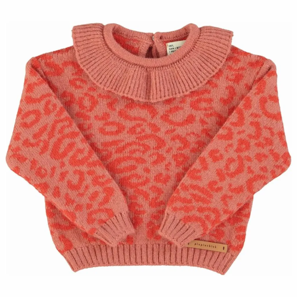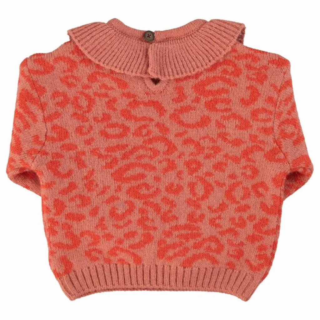 - Pull en maille à col arrondi et volant, avec étiquette logo en cuir. Bouton au dos.