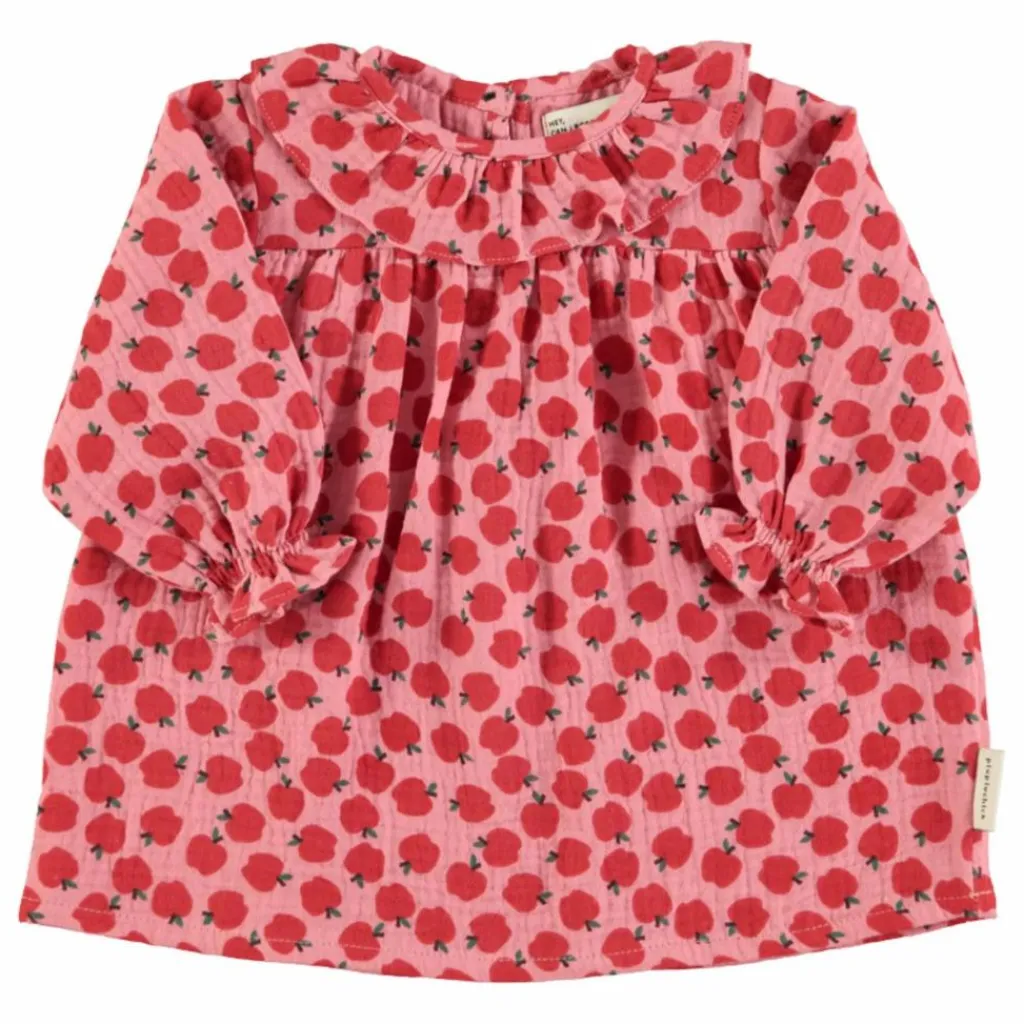 - Robe pour bébé avec col à volants.Poignets élastiqués.Boutons noirs au dos. Empiècement à volants.
