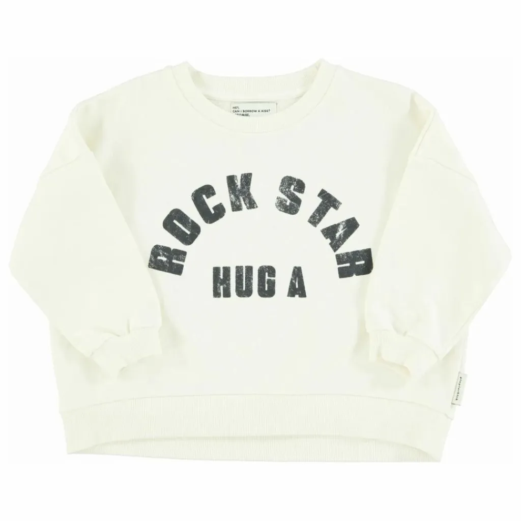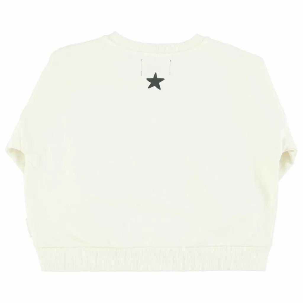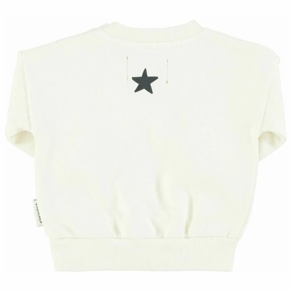 - Sweat unisexe avec impression frontale et petite étoile noire au dos. Détails des coutures. Molleton de coton biologique cardé. Poches côtelées. Les tailles bébé ont des boutons sur les épaules.