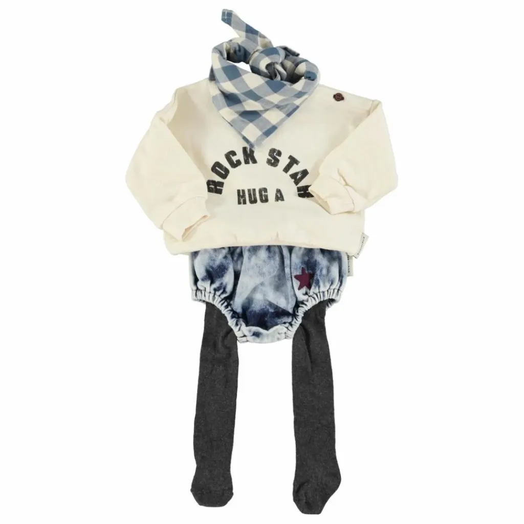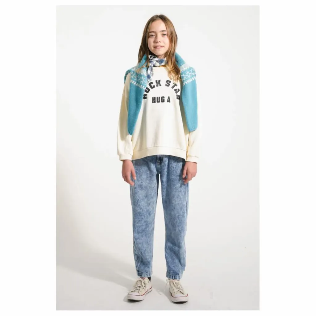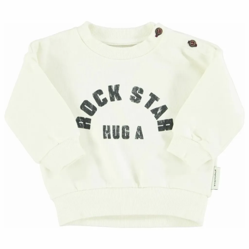 - Sweat unisexe avec impression frontale et petite étoile noire au dos. Détails des coutures. Molleton de coton biologique cardé. Poches côtelées. Les tailles bébé ont des boutons sur les épaules.