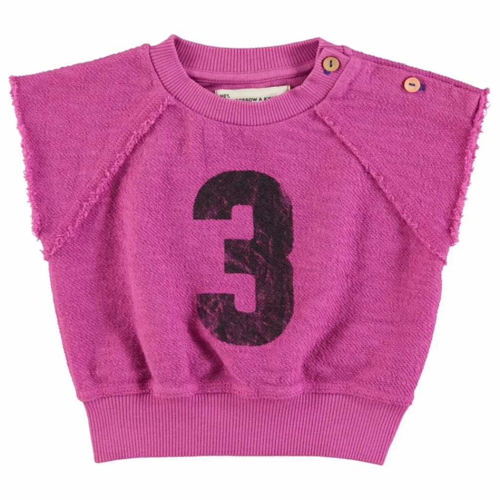 - Sweat sans manches en coton fleece flamé (texture extérieure) avec impression devant et derrière et ourlets côtelés.