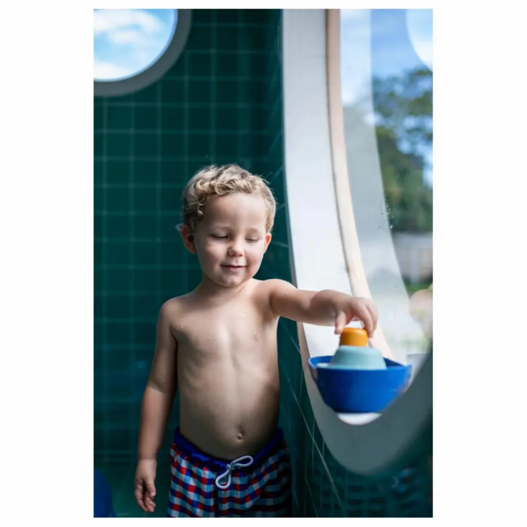 Ce bateau est composé d’une coque 100% en caoutchouc naturel, une cabine et une cheminée. Les parties sont amovibles pour combiner les jeux : contenant pour eau ou filtrer l’eau à travers la cheminée et regardez-la s’écouler par le fond en trois fontaines. Appréciable dans une baignoire ou tout autre endroit avec de l’eau !