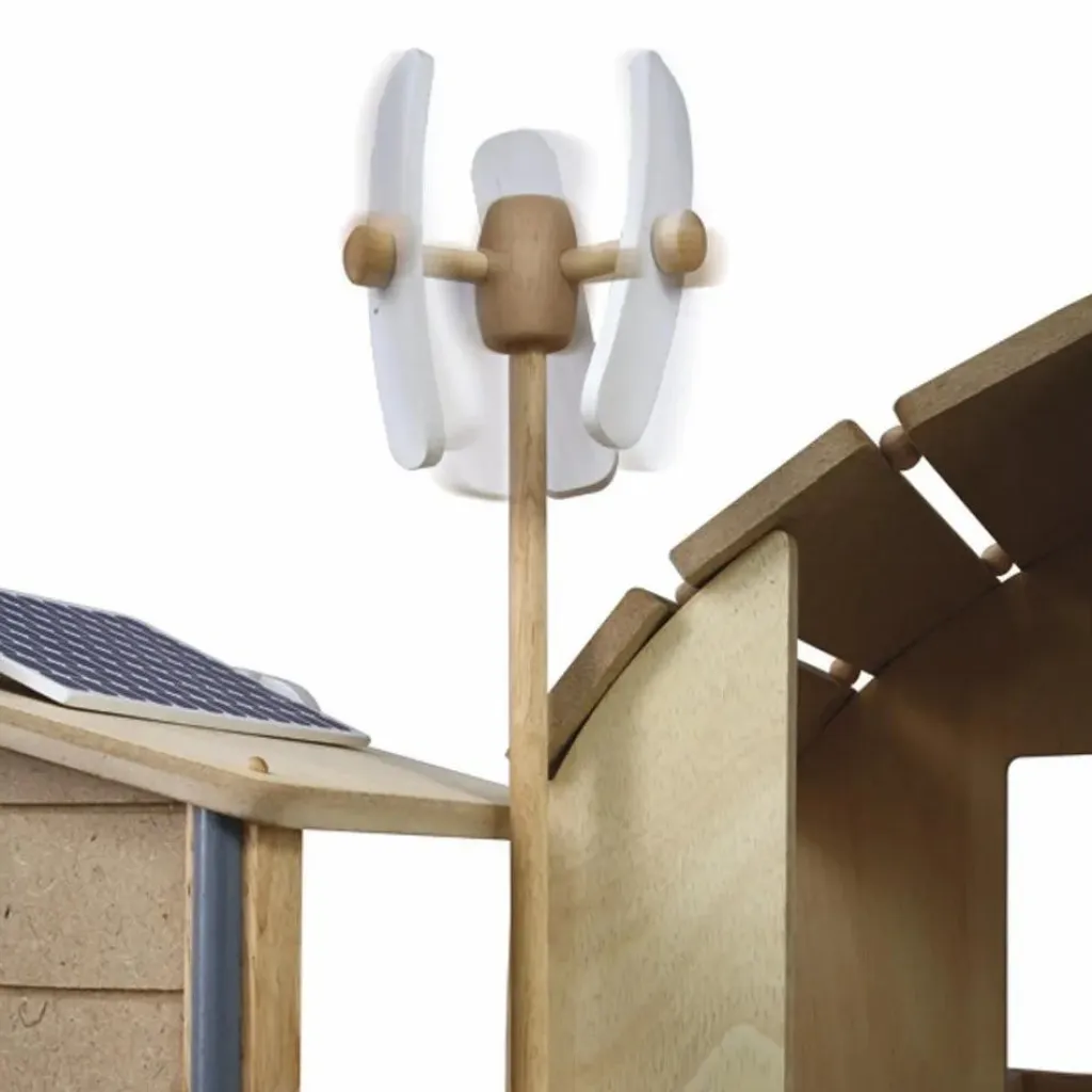 - Détails : Une éolienne, des panneaux solaires avec inverseur électrique, des barils de récupération d’eau de pluie, une façade verte pour aider à contrôler la température de la maison, le tri sélectif pour apprendre dès le plus jeune âge à ne pas mélanger les déche