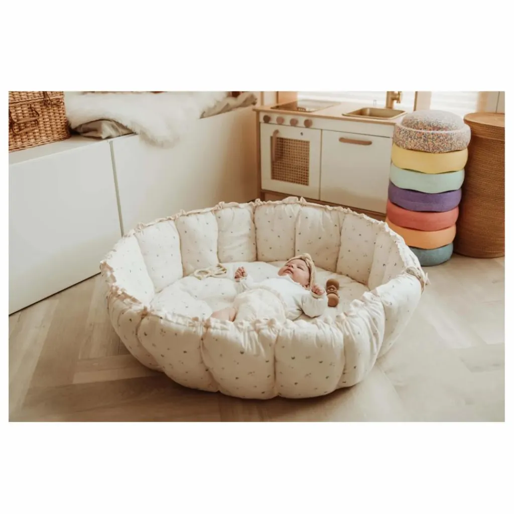 Ce tapis Bloom est un tapis de jeu 3 en 1 unique qui grandit avec votre enfant. Lorsqu’ils sont relevés, les pétales créent un lit de repos sûr pour votre bébé, avec des pare-chocs souples pour le protéger. Lorsqu’il est en fleurs, le tapis de jeu s’ouvre et abaisse les pare-chocs, créant ainsi un grand tapis de jeu confortable pour les bébés. Il peut également être exposé dans une chambre d’enfant ou une salle de jeux, pour ranger les jouets préférés de votre enfant et tout garder au même endroit.