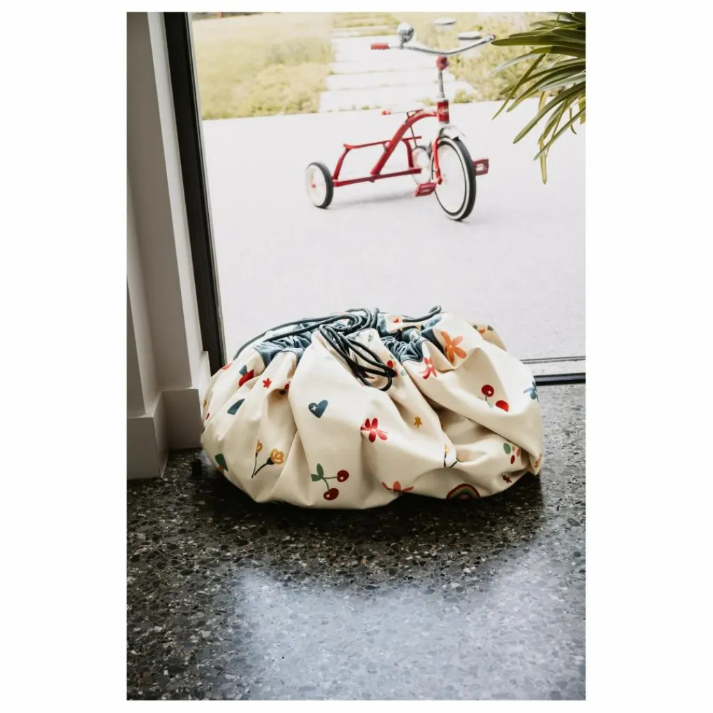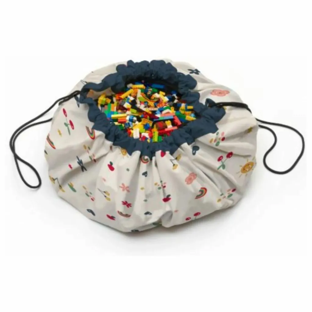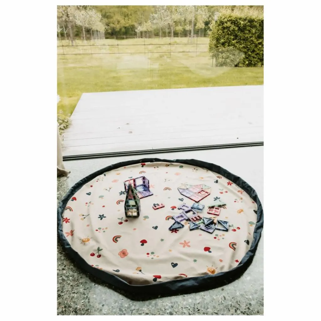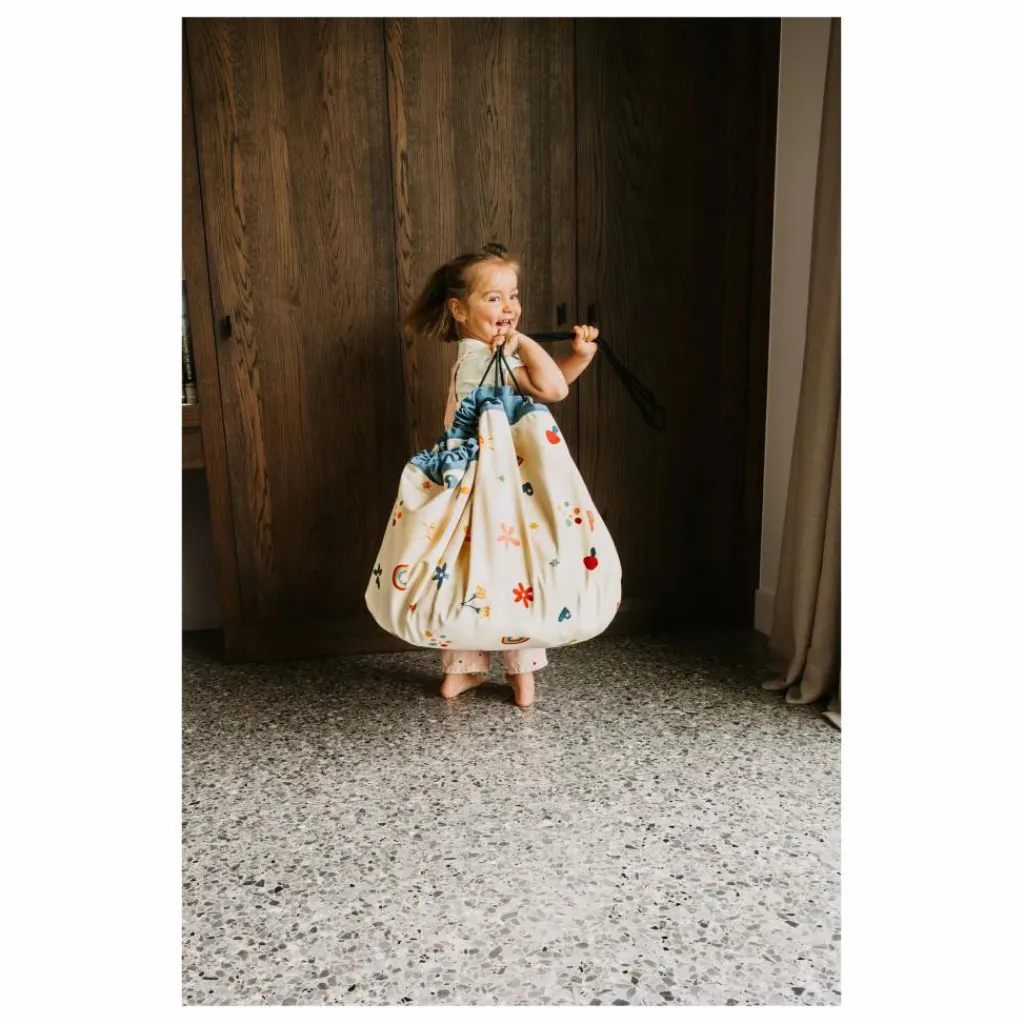Ce design plein de bonne humeur apporte instantanément de la joie à la pièce tout en offrant un espace de jeu confortable pour les moments créatifs.Quand la journée se termine, tirez simplement sur les cordons et le tapis se transforme en sac de rangement pratique – joyeux, rapide et sans désordre.