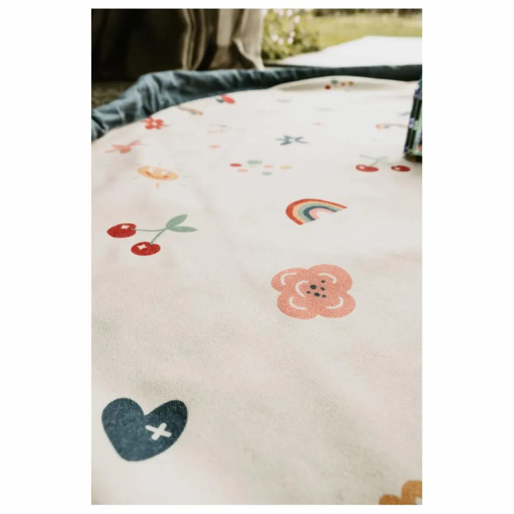 Faites entrer le soleil avec le tapis de jeu play&go® funny days – un tapis 2-en-1 et sac de rangement rempli de smileys, arcs-en-ciel, fleurs et couleurs vives.