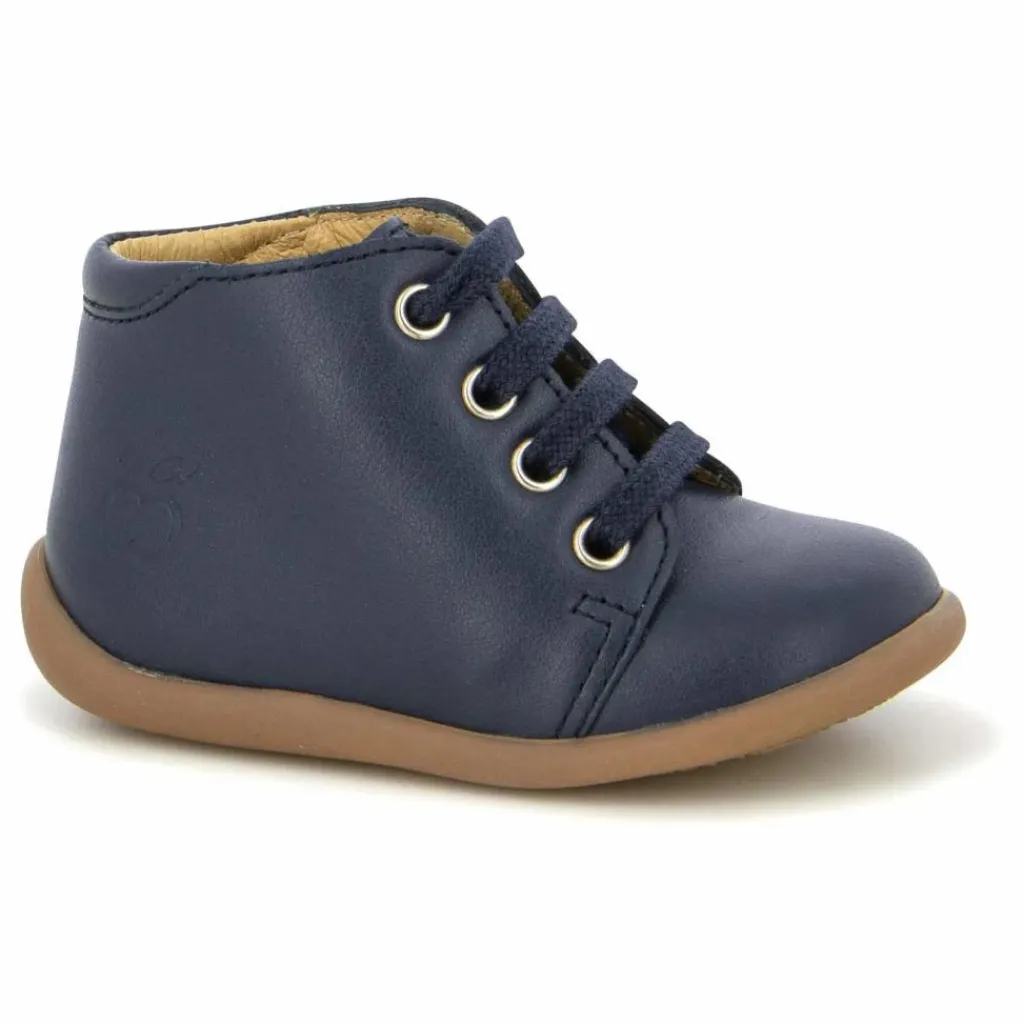 - Empiècement cuir , Finition surpiquée, Logo embossé, Semelles antidérapantes, Idéal pour les premiers pas, Bon maintien du pied, Confortable
