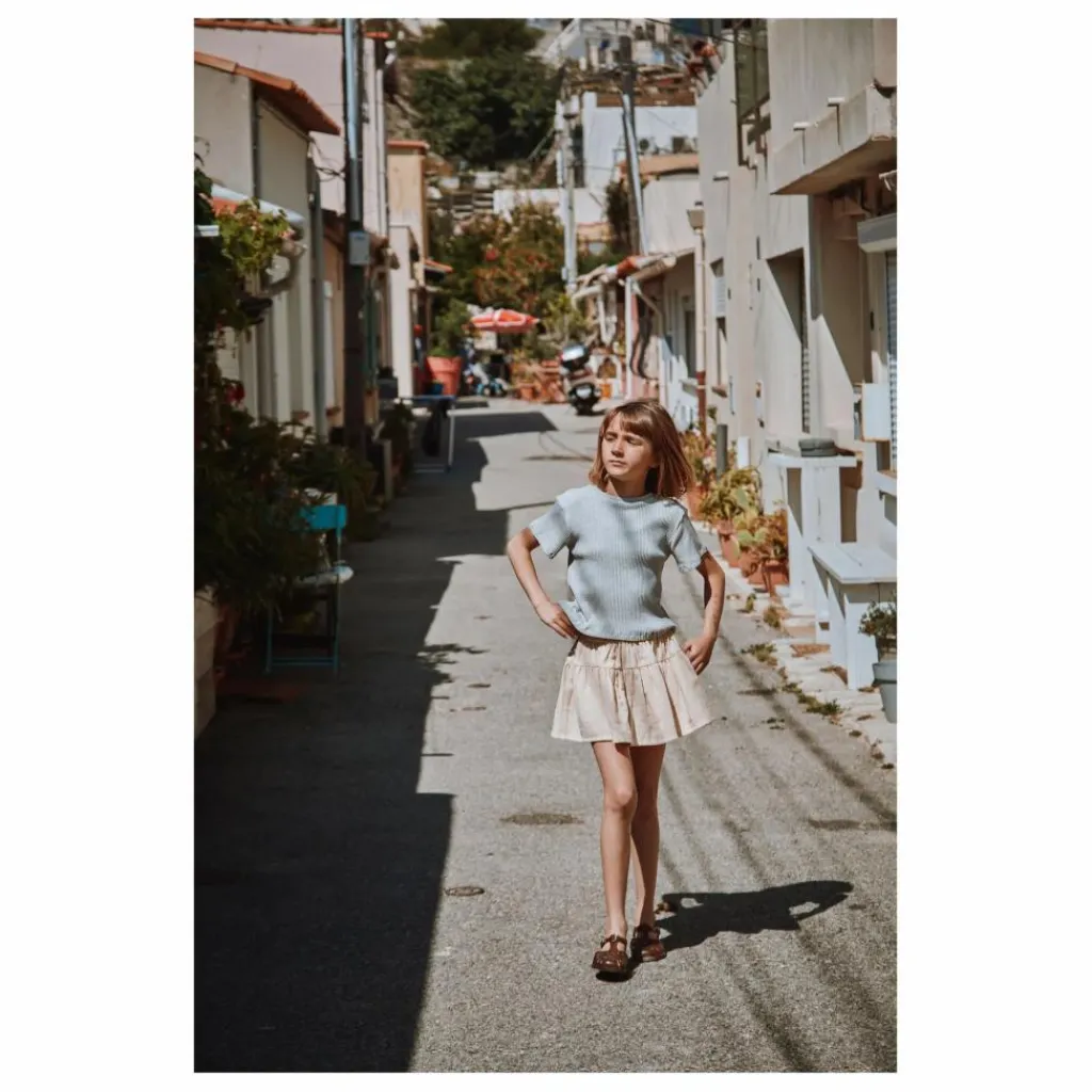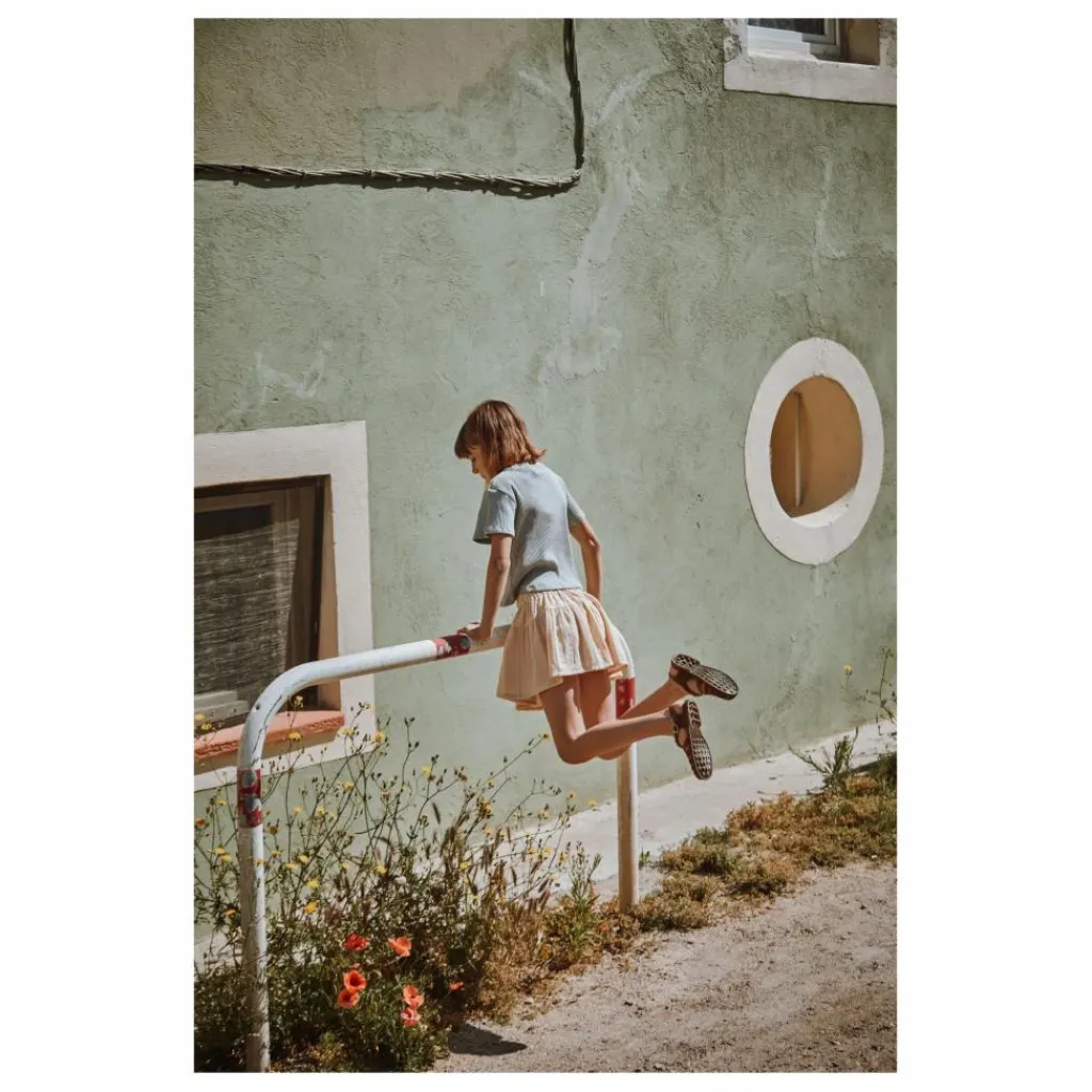 - Jupe courte à fonces & volants. 100% coton issu de l’agriculture biologique. Made in Portugal.