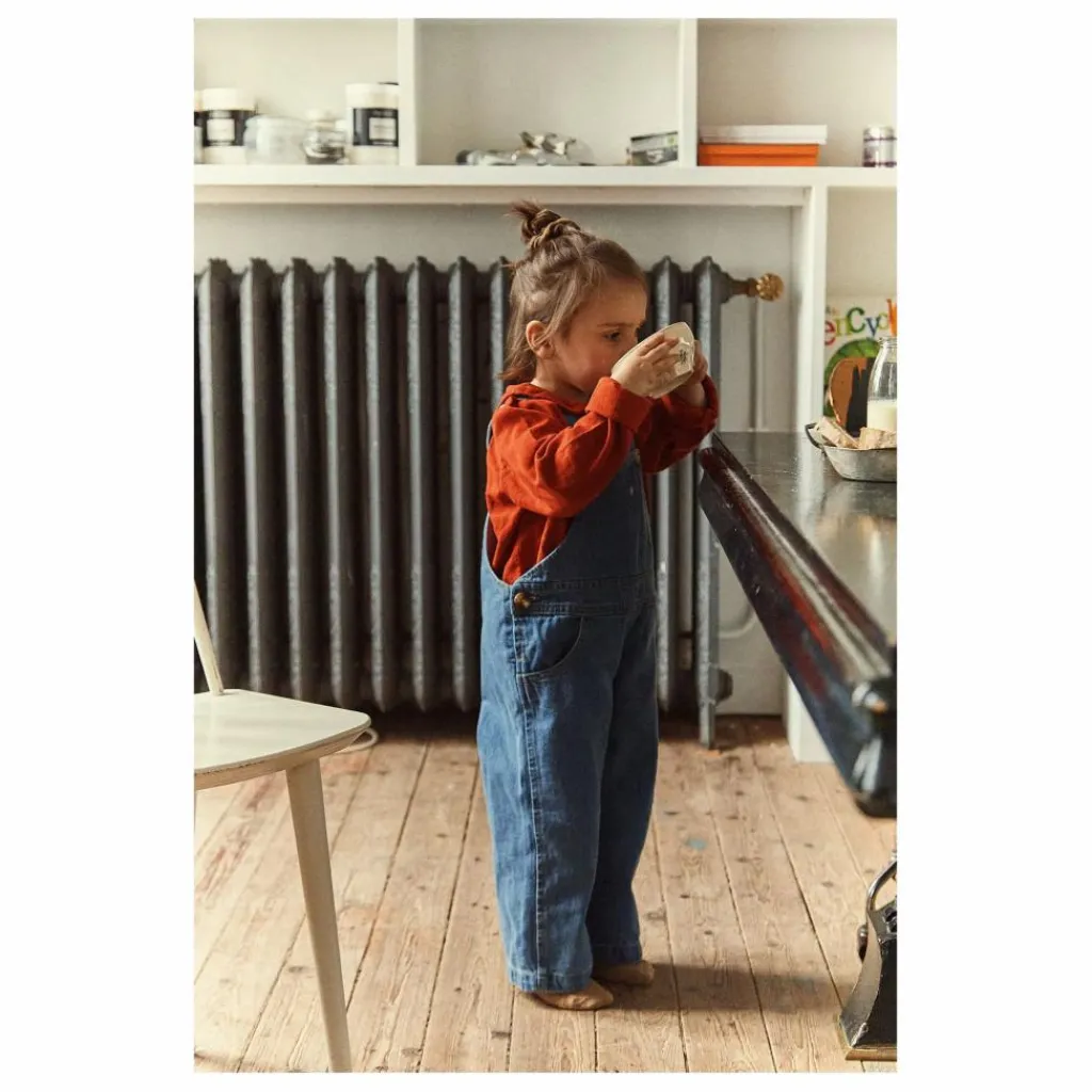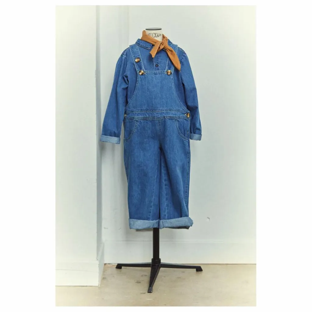 - Salopette en denim, coupe large. Bretelles avec deux boutons réglables. Made in Portugal. Mixte.