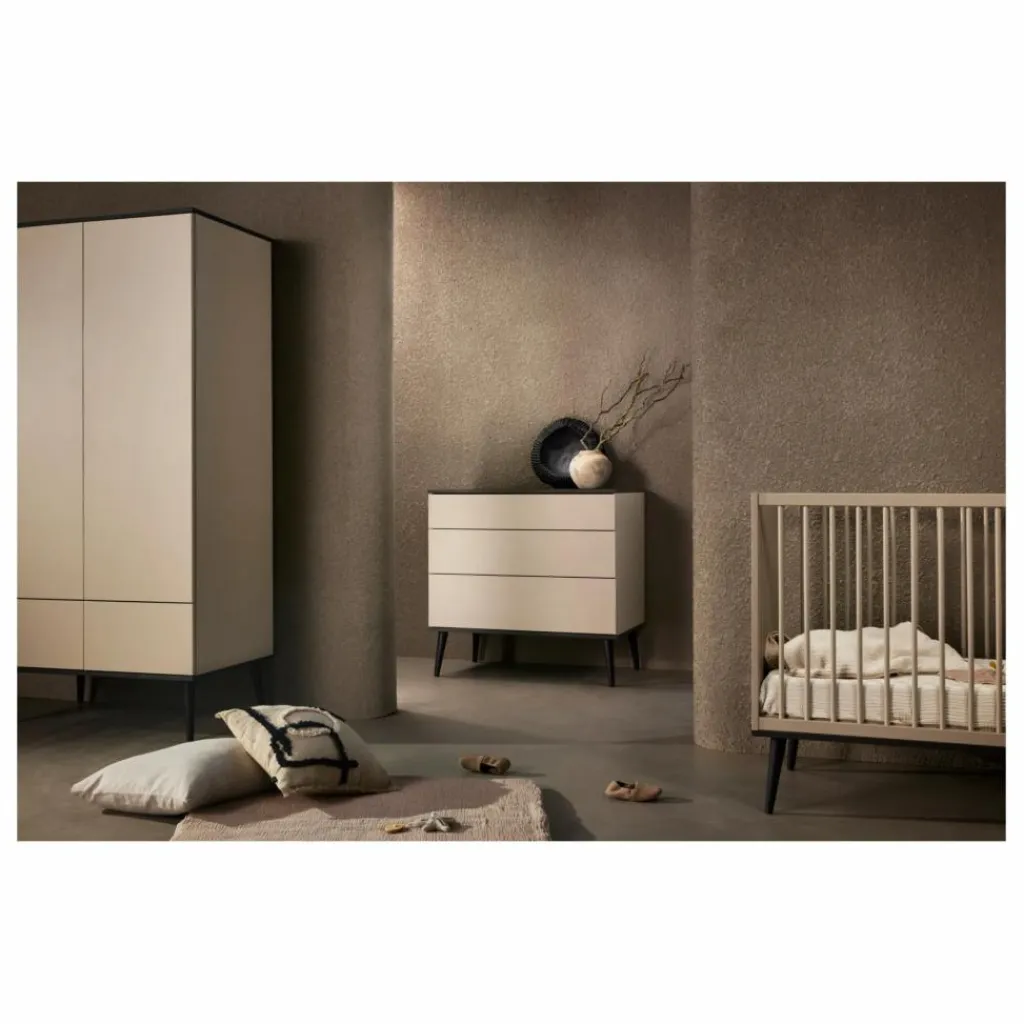 Ce lit bébé au design intemporel grandit avec votre en enfant et se transforme en un lit junior.