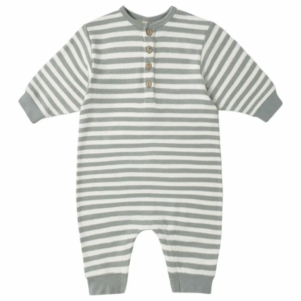 - Notre combinaison décontractée, ornée de boutons en noix de coco et de bordures côtelées, est parfaite pour la garde-robe d’automne et d’hiver de votre enfant. Les boutons-pression au bas des tailles 0-3M à 18-24M facilitent les changements. Avec notre motif à rayures bleues.