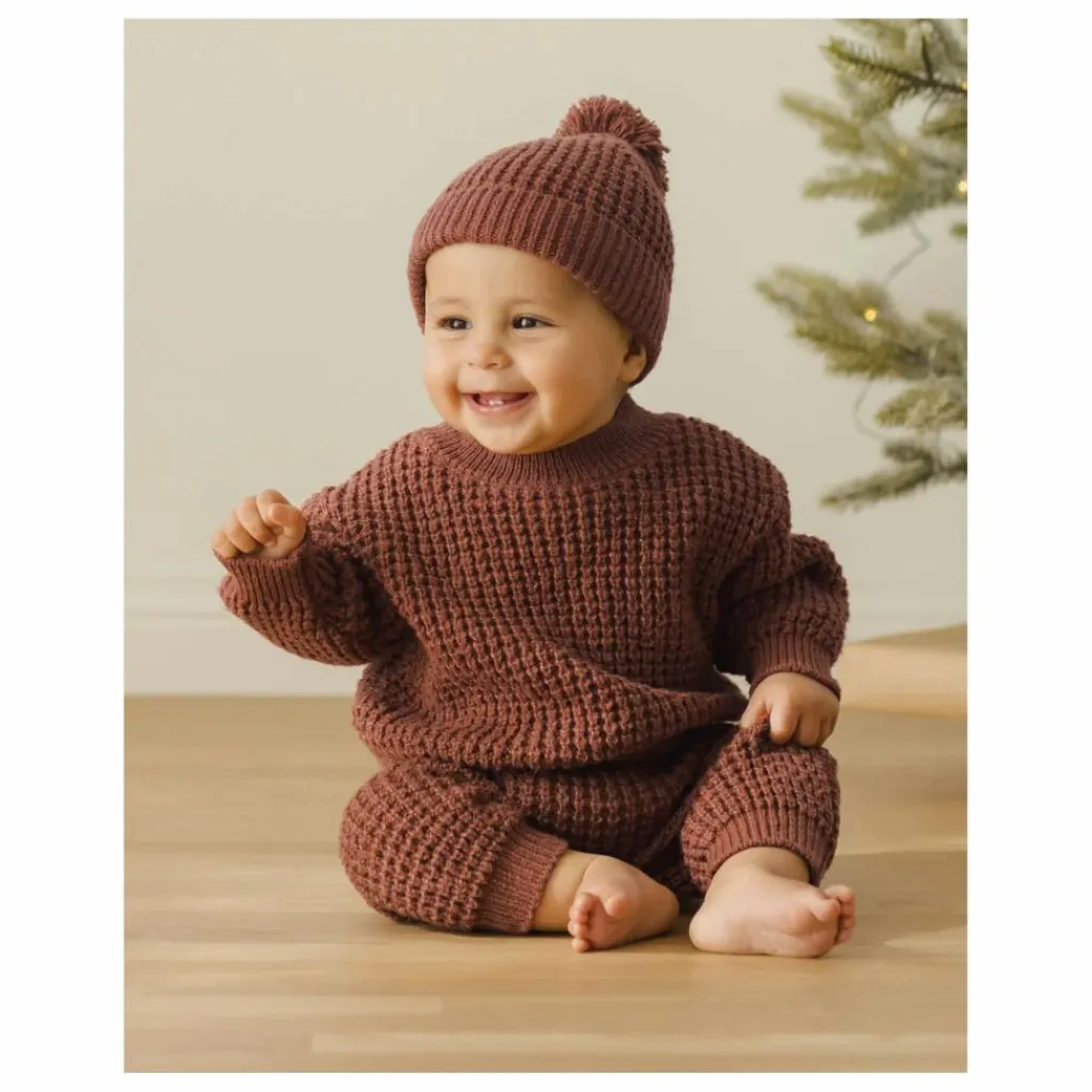 - Bonnet en tricot à grosses mailles avec poignet rabattable, dans notre teinte « cranberry ».