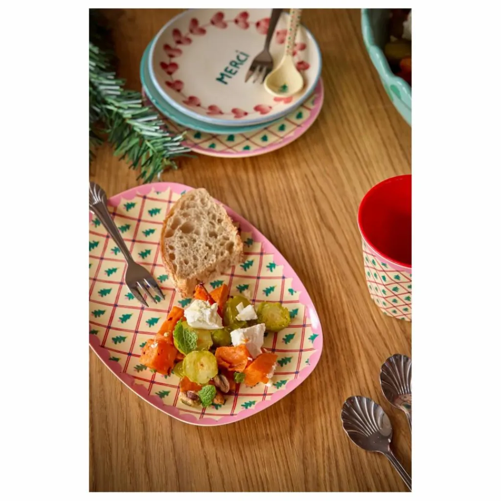 - Les fêtes de fin d’année commencent à ressembler à Noël grâce à notre assiette rectangulaire ornée de l’impression de l’arbre de Noël en forme de diamant. Fabriquée en mélamine durable, elle est parfaite pour un usage quotidien grâce à sa résistance et à sa surface facile à nettoyer. Elle n’absorbe ni les couleurs ni les saveurs, ce qui la rend idéale pour les gâteries de Noël. Remarque : ne convient pas à une utilisation au micro-ondes.