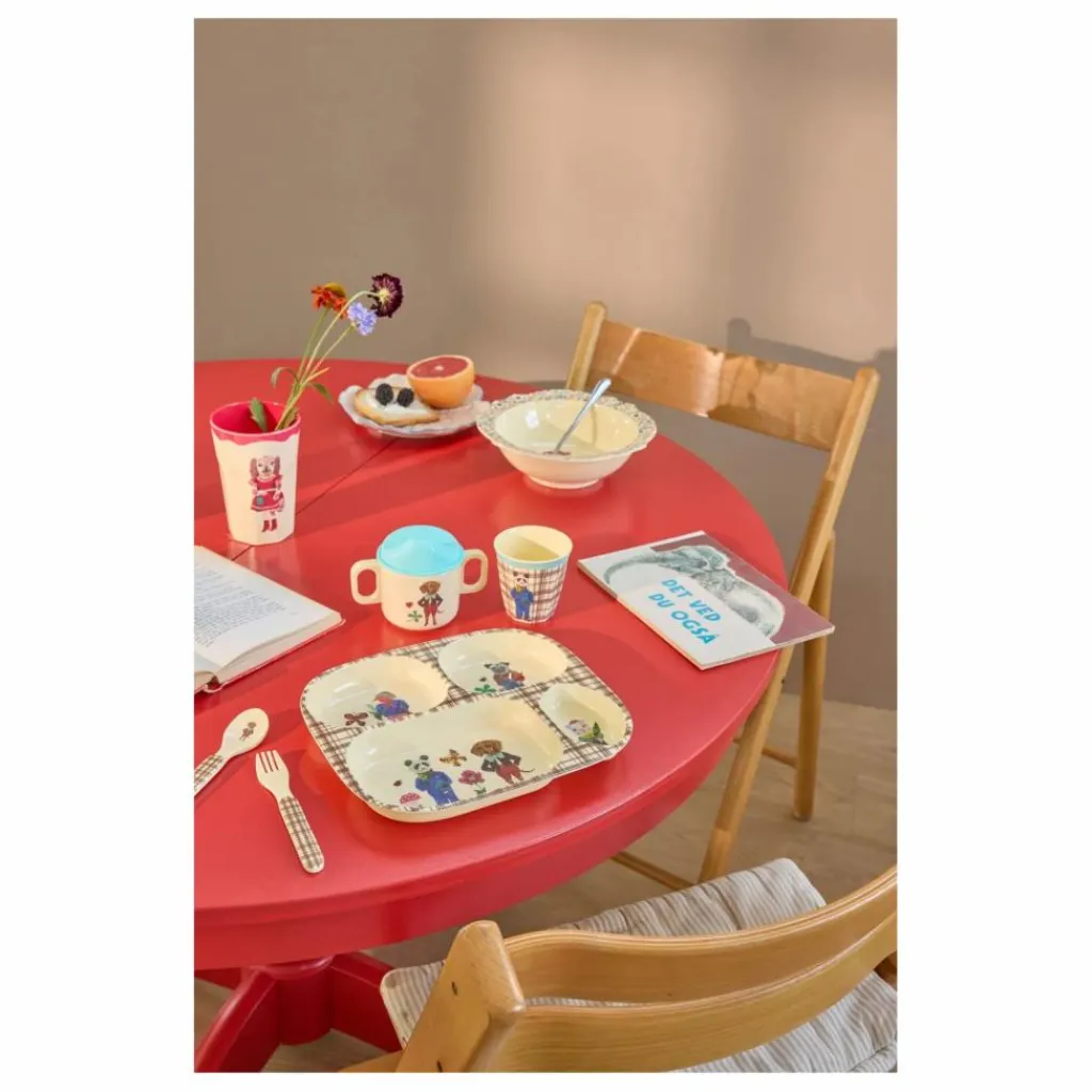 - Set bébé en mélamine pour les plus petits de la famille, présenté dans un adorable coffret cadeau. Fabriqué en mélamine, il est parfait pour un usage quotidien grâce à sa résistance et à sa surface facile à nettoyer, ce qui fait de ce set un incontournable ! Le coffret comprend une charmante assiette à 4 compartiments, un gobelet à anse et des couverts (cuillère et fourchette), le tout orné de l’imprimé animalier marron le plus doux de Nathalie Lété. Les détails ludiques et imaginatifs de Nathalie Lété transforment les moments quotidiens en moments magiques. Attention, ces produits ne conviennent pas au micro-ondes.