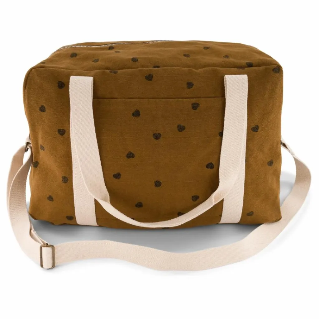 Adoptez le nouveau sac à langer Rose in April à la fois très fonctionnel et au charme fou avec son imprimé coeurs.