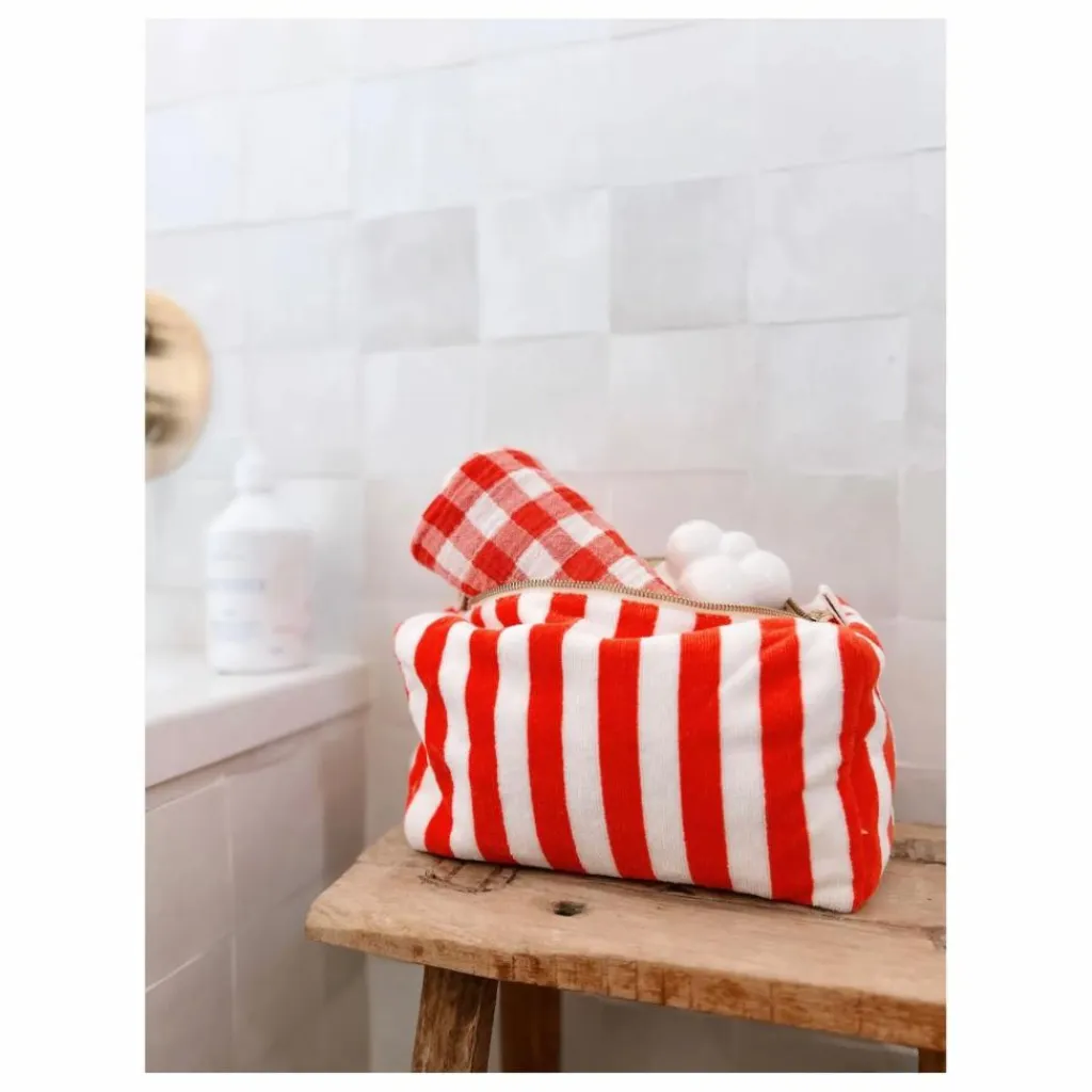 - TROUSSE DE TOILETTE VIC COLORIS RAYE TOMATO 100% COTON – EPONGE DIMENSION 26*13*12CM FABRIQUE AU PORTUGAL CERTIFIE OEKO TEX