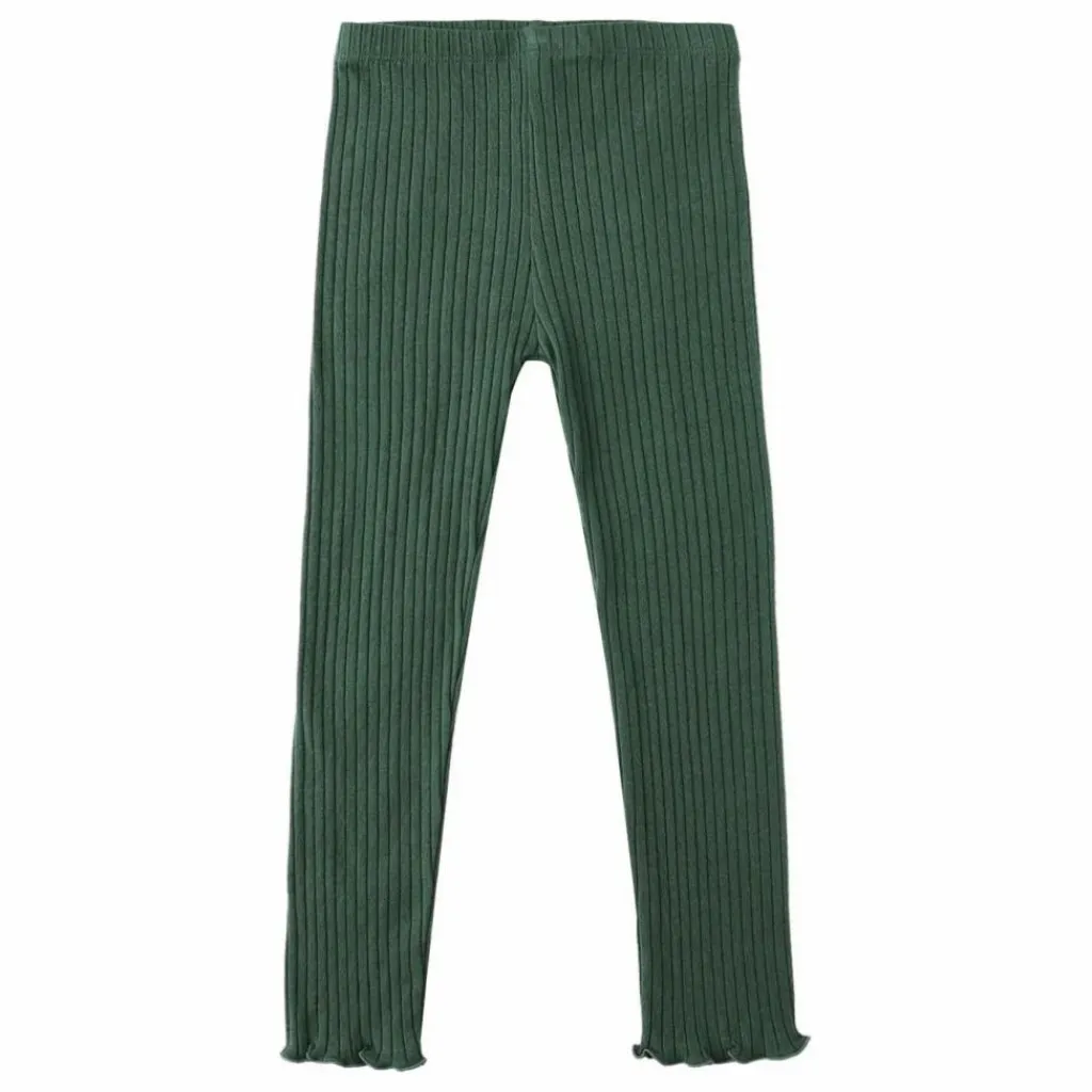 - Le legging classique en maille côtelée, avec un ourlet en forme de laitue et une taille élastique pour un ajustement parfait, dans notre teinte « verte ».