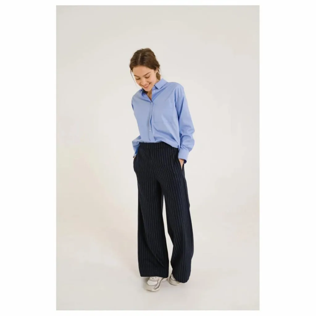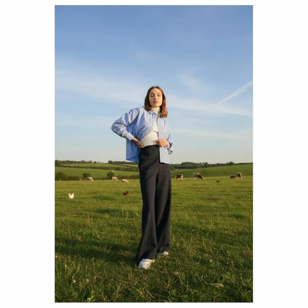 - Chemise courte à manches longues bleu ciel, confectionnée en coton. Inspirée de la chemise d’homme, elle adopte une coupe oversize et se distingue par une poche poitrine plaquée en tissu chiné bleu clair. Col chemise classique, boutonnage apparent et poignets boutonnés pour une allure à la fois structurée et décontractée.