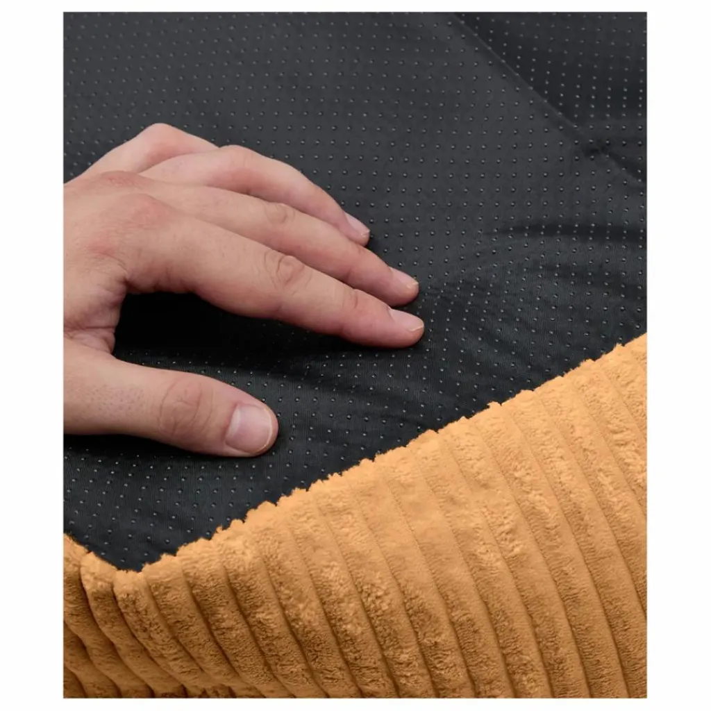 - Lit pour chien amovible et lavable, recouvert d’un tissu en velours côtelé doux et pelucheux fabriqué en Europe